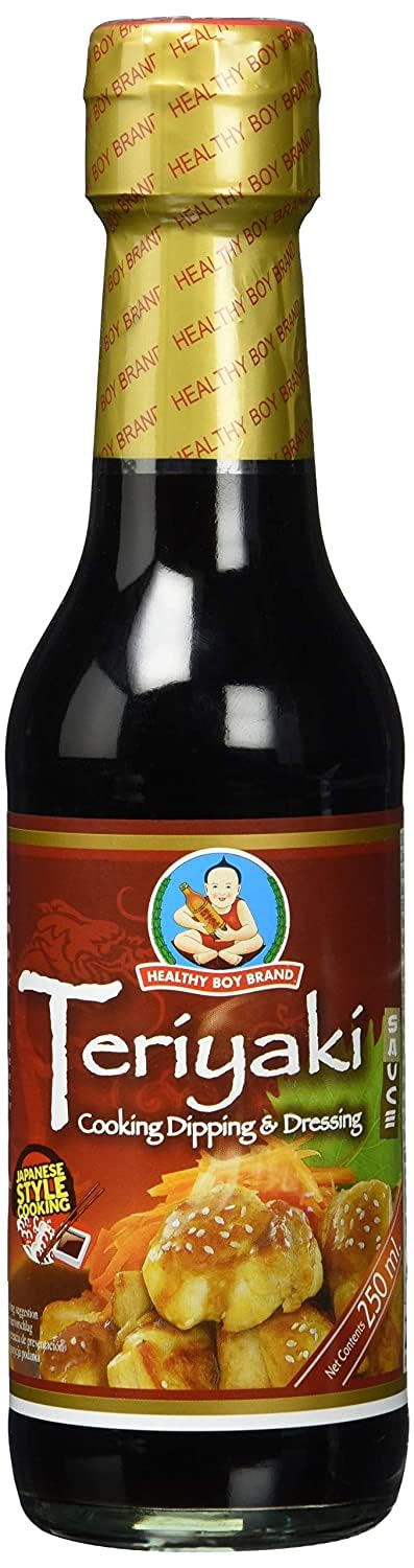 INGREDIENTS Water, soy sauce (water, soybeans, wheat, salt, sugar, flavor enhancers: E631, E627, preservative: E211), sugar, natural vinegar, salt, flavoring, color: E150c, flavor enhancers: E631, E627, preservative: E211 INSTRUCTIONS Marinate the meat or fish with the Teriyaki sauce, then grill. Serve with grilled meat or fish.