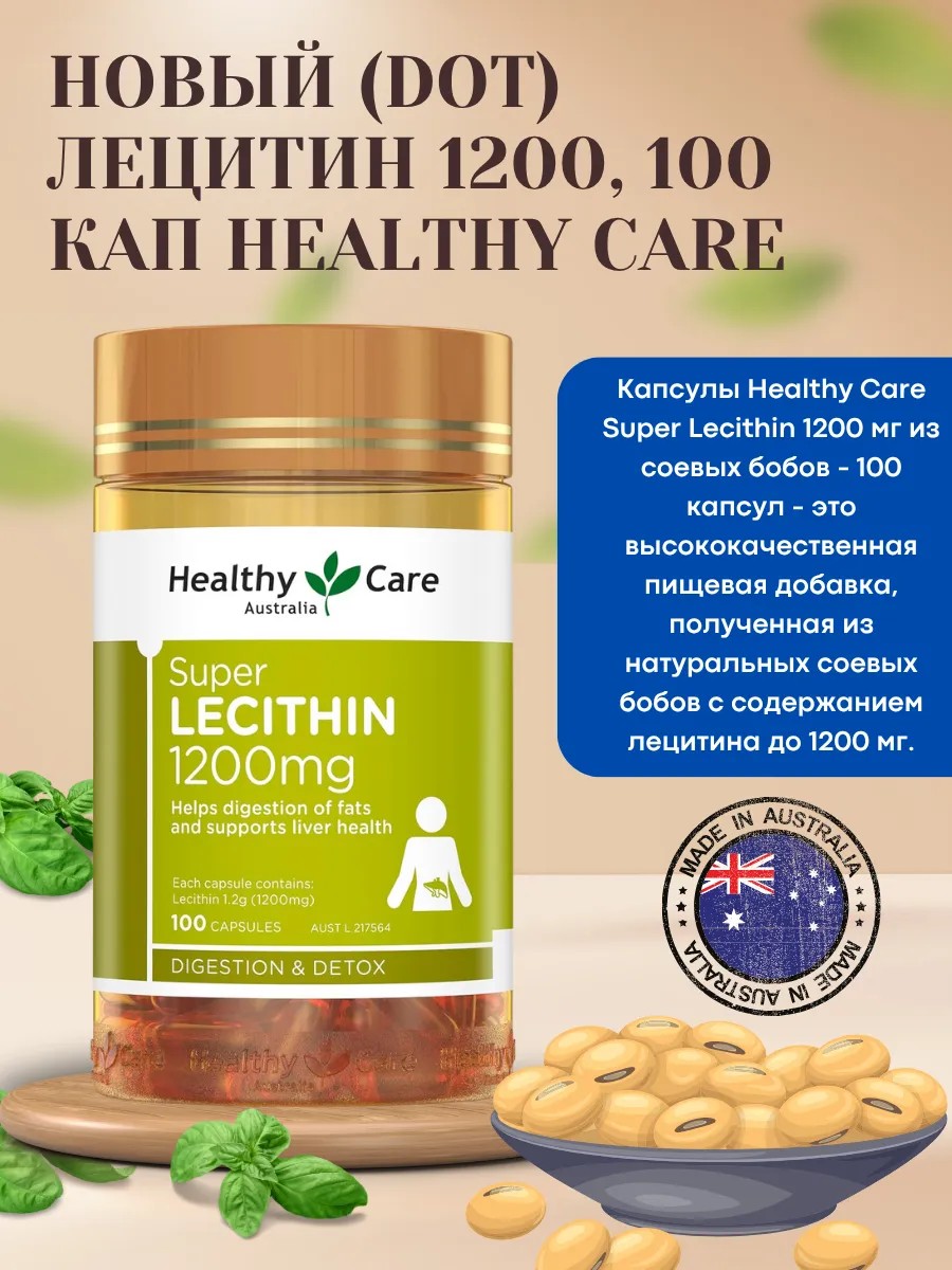 Healthy Care Super Lecithin 1200mg is a natural dietary supplement based on high-quality soy lecithin, manufactured in Australia to strict safety and purity standards. Each capsule contains 1200mg of lecithin derived from soybeans and is a powerful source of phospholipids, choline, inositol, and linoleic acid. Lecithin is a vital component of cell membranes, particularly important for the functioning of the brain, liver, heart, and digestive system. It helps the body break down and absorb fats, promotes bile production, and facilitates liver function, protecting it from overload and fatty degeneration. Due to its ability to emulsify fats, lecithin lowers bad cholesterol levels in the blood, supports cardiovascular health, reduces the risk of plaque formation, and improves circulation. Healthy Care Super Lecithin contains natural choline, an essential building block for the neurotransmitter acetylcholine, which is responsible for memory, concentration, and nerve impulse transmission. Regular intake of lecithin improves cognitive function and increases mental alertness, especially in individuals with high mental stress, and is also beneficial in older adults for preventing age-related brain changes. Furthermore, lecithin actively participates in metabolism, accelerates metabolism, improves digestive function, helps with constipation and flatulence, and promotes the complete absorption of fat-soluble vitamins A, D, E, and K. Thanks to its gentle cleansing effect on the liver, this product can be used for fatty liver disease, chronic fatigue, lipid metabolism disorders, and high triglyceride levels. Lecithin is especially beneficial for women: it maintains hormonal balance, improves the condition of skin, hair, and nails, and alleviates menopausal symptoms. The soft capsules are easy to swallow and quickly absorbed. The product does not contain gluten, sugar, yeast, milk, preservatives, artificial colors and flavors, making it safe for people with sensitive digestion and a tendency to allergies. Adults are recommended to take 1-3 capsules daily after meals. The course of treatment can last from 1 to 3 months, depending on the condition of the body. The product is suitable for men and women of all ages, and is especially useful for people leading a sedentary lifestyle, experiencing stress, with memory impairment, high cholesterol, or liver strain. The package contains 100 capsules, making the complex convenient and economical for long-term use. The manufacturer Healthy Care is a recognized Australian brand of natural supplements, distinguished by the high quality, environmental friendliness, and safety of its products. This product is certified in Australia and registered in the ARTG database under number 217564, which confirms its official recognition and effectiveness. Ingredients (per 1 capsule): lecithin (soy) - 1200 mg; Other ingredients: soybean oil, gelatin, glycerin, purified water. Does not contain gluten, yeast, dairy components, artificial colors, flavors, sugar, or preservatives.