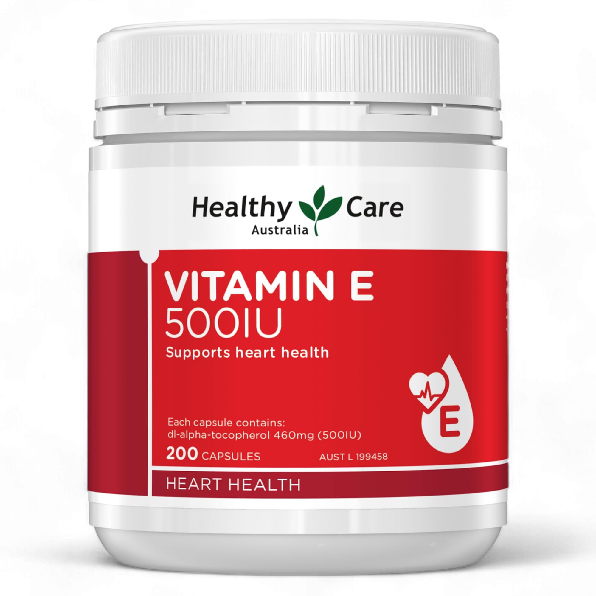 Quality first: Australia is one of the few countries in the world that regulates health supplements with therapeutic regulations. Before anything leaves our warehouse it has to go through over 20 quality checks. All conforming to the TGA and cGMP standards. Clean and pure: Free from added sugar, yeast, gluten, starch, wheat, corn, milk derivatives, artificial colours, and preservatives, these vitamin E supplements are an excellent choice for individuals looking for a pure supplement option. This commitment to purity makes them suitable for a wide range of dietary preferences and sensitivities. User-friendly capsule format: Packaged in a convenient capsule form, Healthy Care vitamin E 500IU ensures easy ingestion and fast absorption. The 200-capsule bottle offers a practical solution for long-term supplementation, simplifying daily health maintenance with easy-to-swallow capsules. Robust antioxidant benefits: Vitamin E is a powerful antioxidant that helps reduce oxidative pressure by neutralising free radicals in the body. Regular intake supports heart health and enhances the body's immune response. It's particularly beneficial for protecting cellular structures against damage from free radicals and environmental toxins. Comprehensive health support: Healthy Care vitamin E 500IU capsules are designed to fortify your daily health regimen by providing essential antioxidant protection. Each capsule delivers 500 International Units of vitamin E, a vital nutrient known for its role in maintaining cell integrity and overall vitality.