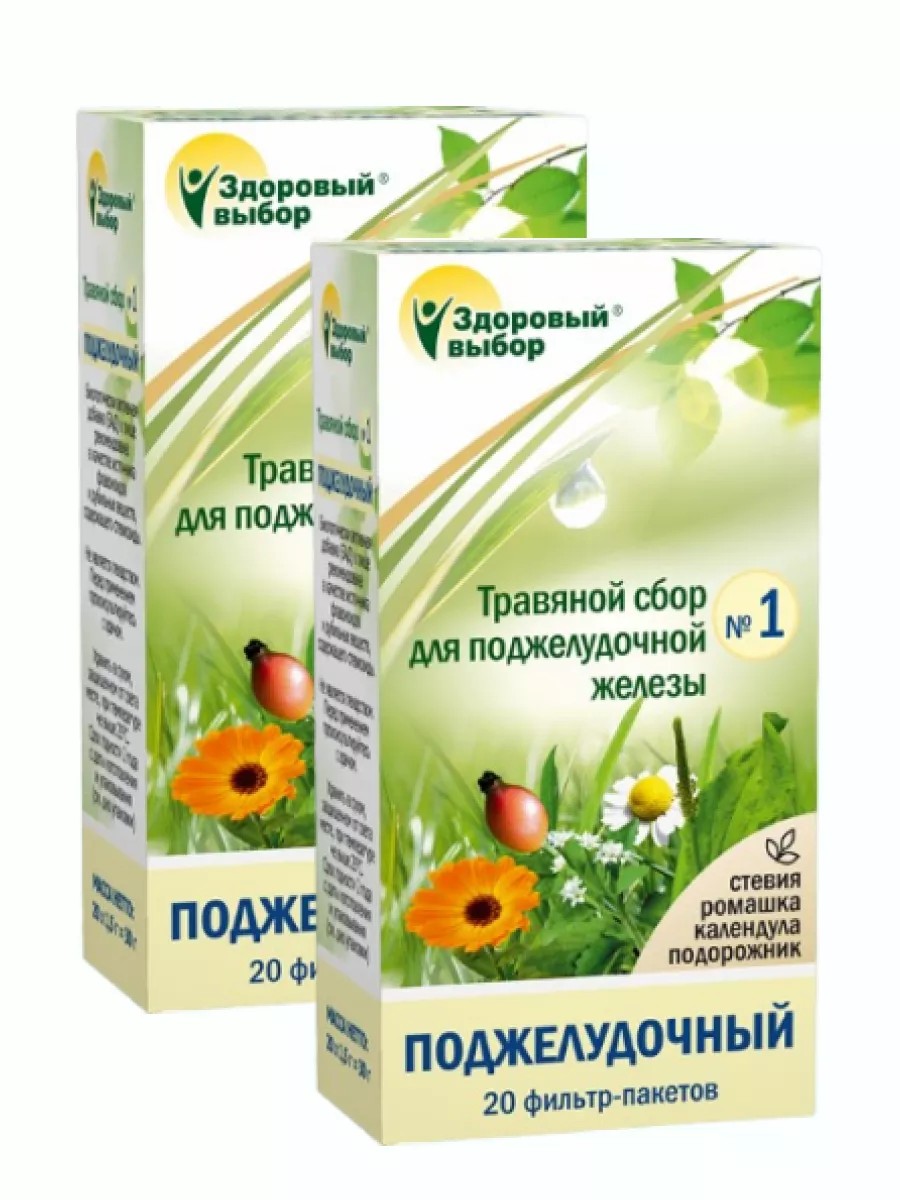Herbal collection Healthy Choice №1 for the pancreas is a biologically active food supplement (BAA), recommended as a source of flavonoids and tannins, containing steviosides; is a set of herbs that have a beneficial effect on the functioning of the pancreas: they help normalize carbohydrate metabolism, normalize the functioning of the pancreas, and have an anti-inflammatory effect. Each package contains 1.5 g of the collection in filter bags, 20 pieces per package.