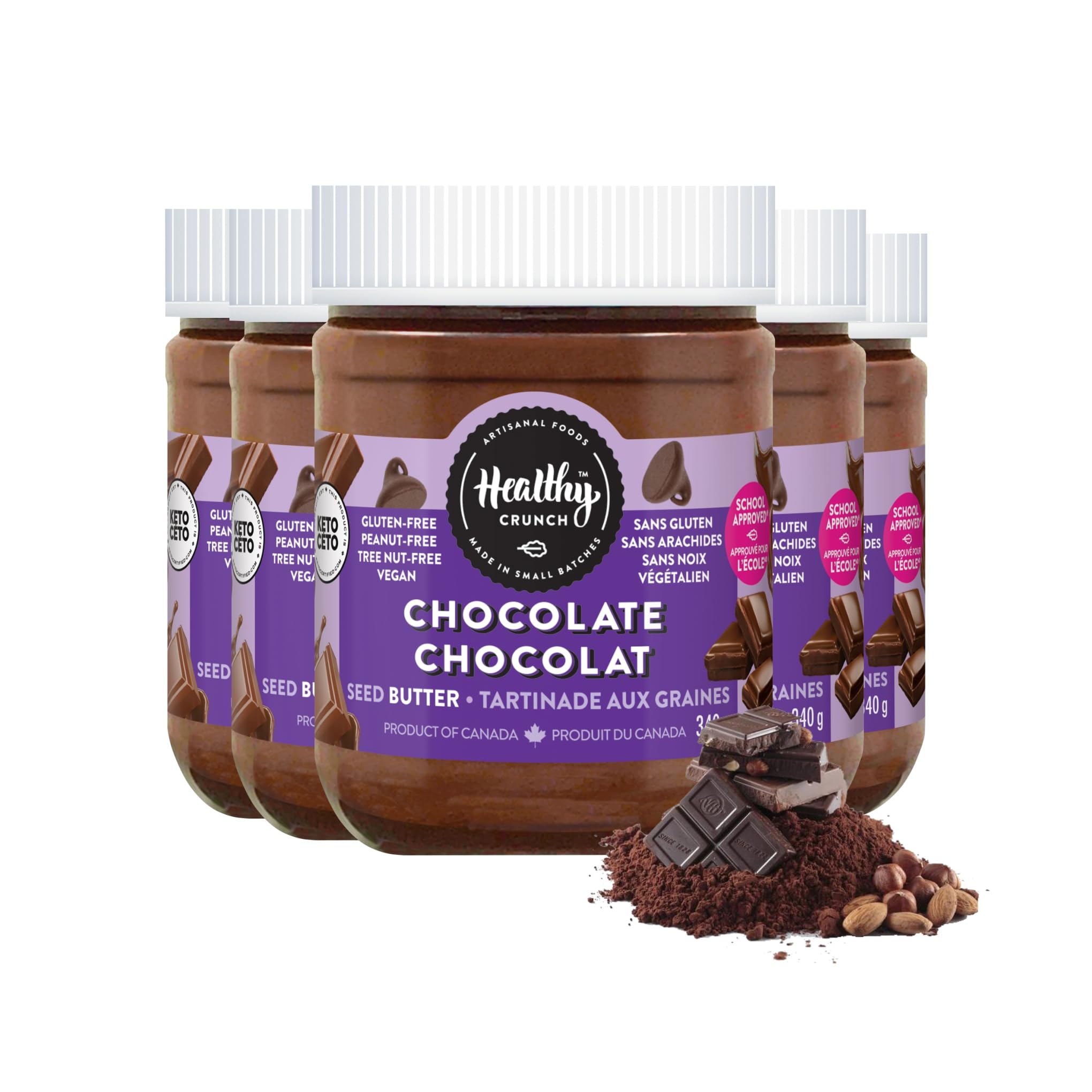 Organic Clean Ingredients: Made with organic sunflower seeds, cocoa powder, tapioca fiber, and natural chocolate flavor. Free from artificial additives, it's a healthy alternative to traditional nut butters. Keto School-Approved: Our allergen-free, nut-free seed butter is school-safe, keto-friendly, and perfect for those with dietary restrictions or allergies. Healthy Fats with MCT Coconut Oil: Contains MCT Coconut Oil, a quick energy source that supports metabolism and is keto-certified for a low-carb lifestyle. Rich in Nutrients Antioxidants: Packed with vitamin E, selenium, and zinc, this sunflower seed butter supports immune health and energy production with every serving. Delicious Nut-Free Chocolate Spread: Indulge in our creamy, nut-free Chocolate Seed Butter made from sunflower seeds. A rich chocolate flavor with no added sugar, perfect for kids and adults alike.