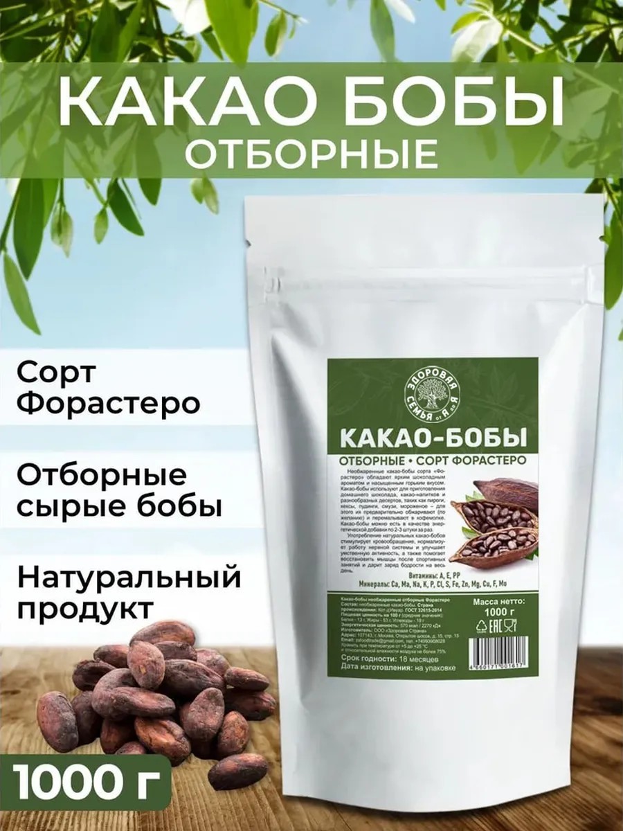 | Комплектация | Какао-бобы целые необжаренные, сорт Форастеро, 1 кг (1000 г) |