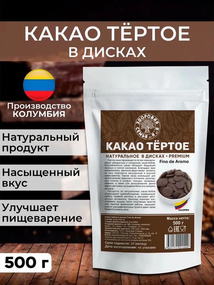 | Комплектация | Какао тертое натуральное в дисках, 500 г |