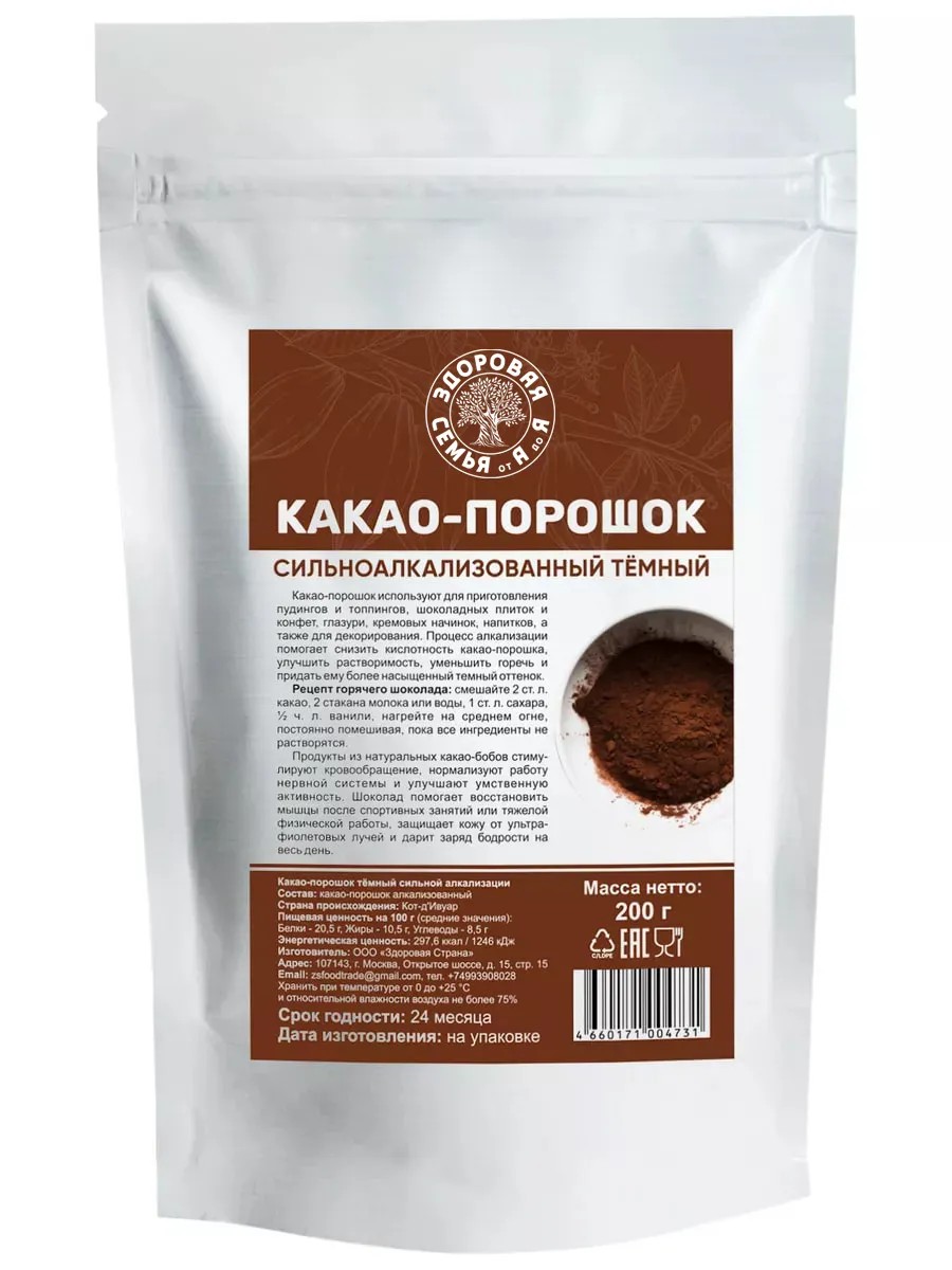 | Комплектация | Какао-порошок сильноалкализованный (темный) DB400, 200 г |
