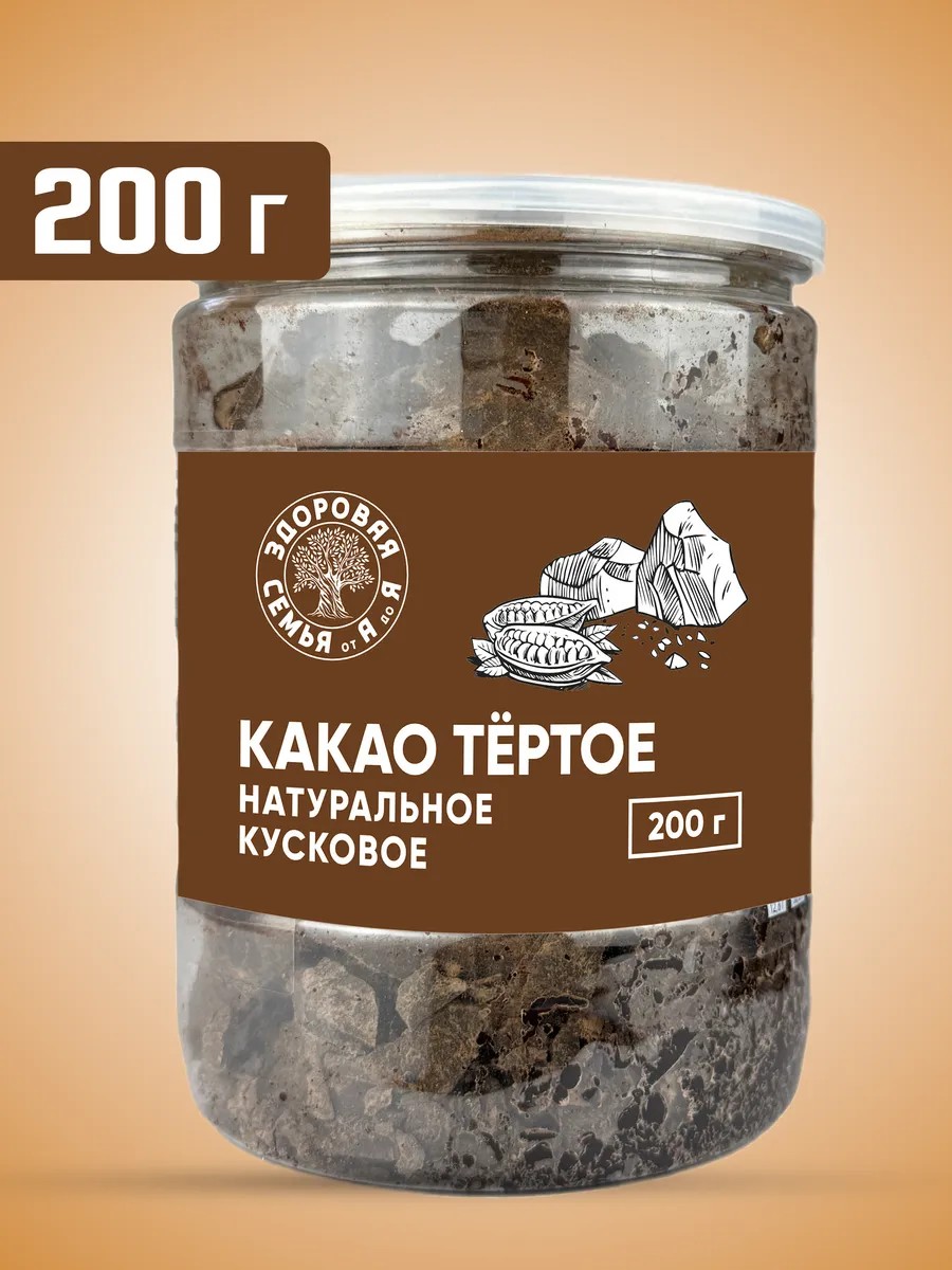 Какао-тертое натуральное кусковое, 200 г, банка