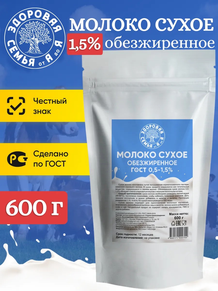Молоко сухое обезжиренное 0,5-1,5% ГОСТ, 600 г