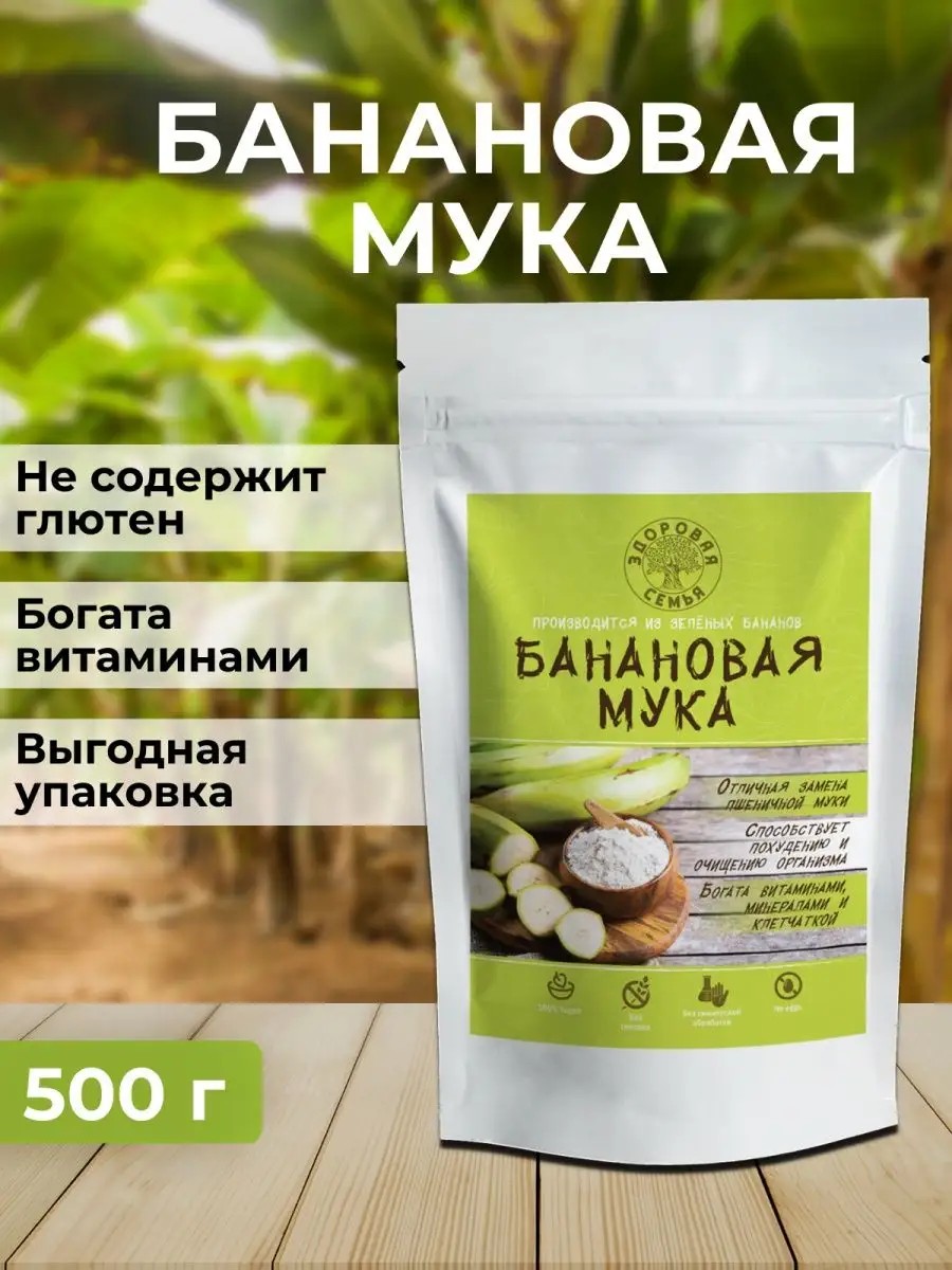 | Комплектация | Мука из зеленых бананов, без глютена, 500 г |