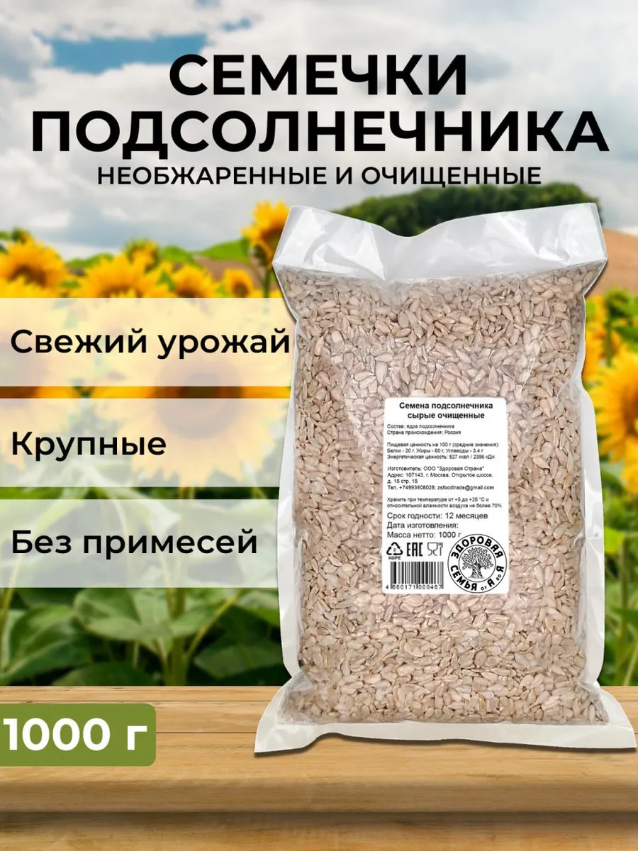 Здоровая Семья от А до Я Семечки подсолнечника очищенные пищевые сырые, 1 кг (1000 г)
