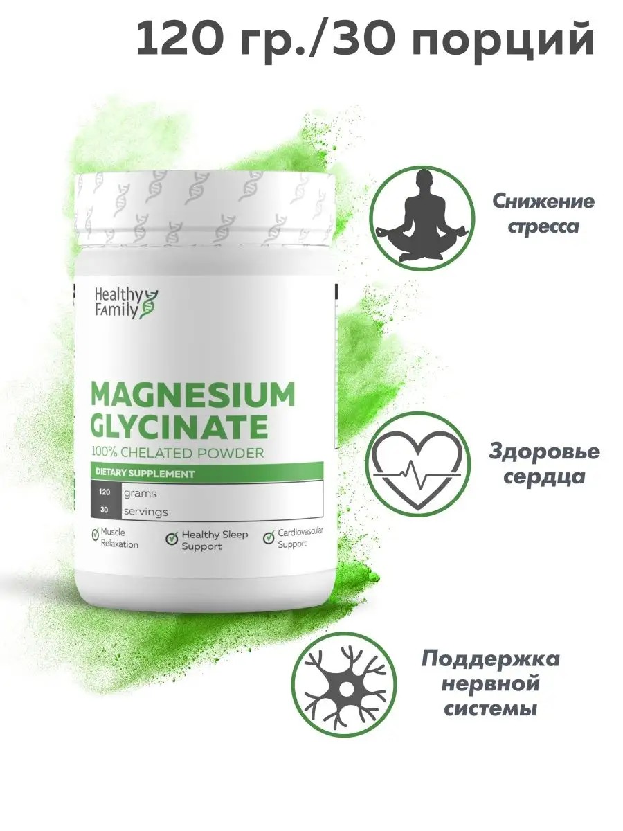 Healthy family Магний Хелат 400мг, Magnesium Глицинат в порошке 120 г