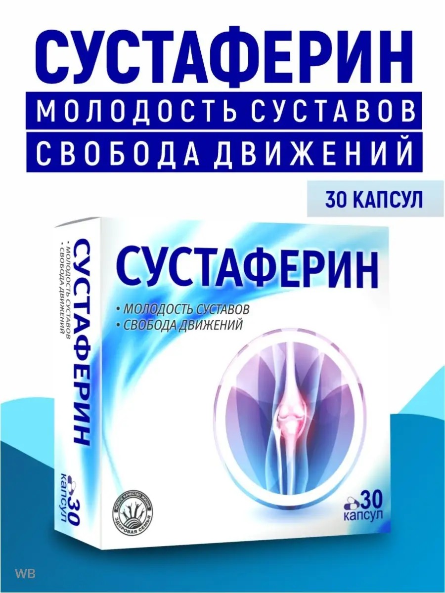 Витаминный комплекс капсулы для суставов Сустаферин - это комплекс концентрированных растительных экстрактов, сочетающий натуральные вещества, необходимые для восстановления соединительной ткани и хрящей, способствующие увеличению подвижности суставов и уменьшению боли. Несмотря на всю эффективность растительного комплекса, бады для суставов является полностью безопасным для профилактики болевых ощущений восстановления подвижности суставов, полного предотвращения и устранения любых изменений в работе двигательной системы. Благодаря высокому содержанию растительных экстрактов, пантов марала, и гиалуроновой кислоты таблетки для суставов Сустаферин способствуют ускорению сращивания костной ткани, улучшению кровообращения в области перелома или вывиха и снятию воспалению и опухоли. хондроитин сульфат, как один из основных компонентов, способствует восстановлению хрящевой ткани, подвижности суставов, снятию болей и отёков, улучшает обменные процессы в области суставов, устраняет воспалительные процессы. Добавка для суставов, усиливая капиллярное кровообращение в конечностях позволяет снять боли и отёки, улучшает обменные процессы в области суставов, устраняет воспалительные процессы. Использование широкого спектра натуральных адаптогенов дает хорошие результаты при общем истощении организма (дистрофия), являясь эффективным средством для восстановления сил после перенесённых заболеваний и операций, нормализуя здоровый обмен веществ, активизируя работу всех систем и органов, улучшая качество жизни. Комплекс «Сустаферин» эффективно и направлено воздействует на причину заболевания. Рекомендуется использовать хондроитин глюкозамин для восполнения дефицита минеральных компонентов, витаминов и как источник флавоноидов, развивающегося на фоне следующих состояний: при дегенеративно дистрофических болезнях суставов и позвоночника; при межпозвоночном остеохондрозе; при первичном артроз, остеопорозе, остеоартрозе, пародонтопатии; при переломе, вывихе костей (для быстрого и эффективного сращивания и восстановления костной ткани); Хондропротекторы для суставов предотвращают артроз коленного сустава. Добавка для суставов и связок и гиалуроновая кислота капсулы. Витамины для суставов и связок с гиалуроновая кислота капсулы. Витамины для иммунитета. Каштан имеет обезболивающее действие для суставов и мыщц. Панты марала от боли в суставах и мышцах. Шиповник содержит витамин с витамин е витамин а. Крапива трава имеет антибактериальный эффект. Амарант это противовирусное средство для иммунитета. Гиалуроновая кислота и витамин c коллаген капсулы. Сабельник хондроитин глюкозамин бад. Босвелия глюкозамин хондроитин мсм. Корень лопуха хондроитин. Экстракт корня лопуха глюкозамин мсм. Способ применения: по 1 капсуле 3 раза в день за 30 мин до еды, запивать большим количеством воды. Курс приема - 1 месяц, при хронических заболеваниях—2 месяца. Рекомендуется 3-4 курса в год. Противопоказания: беременность, индивидуальная непереносимость компонентов.
