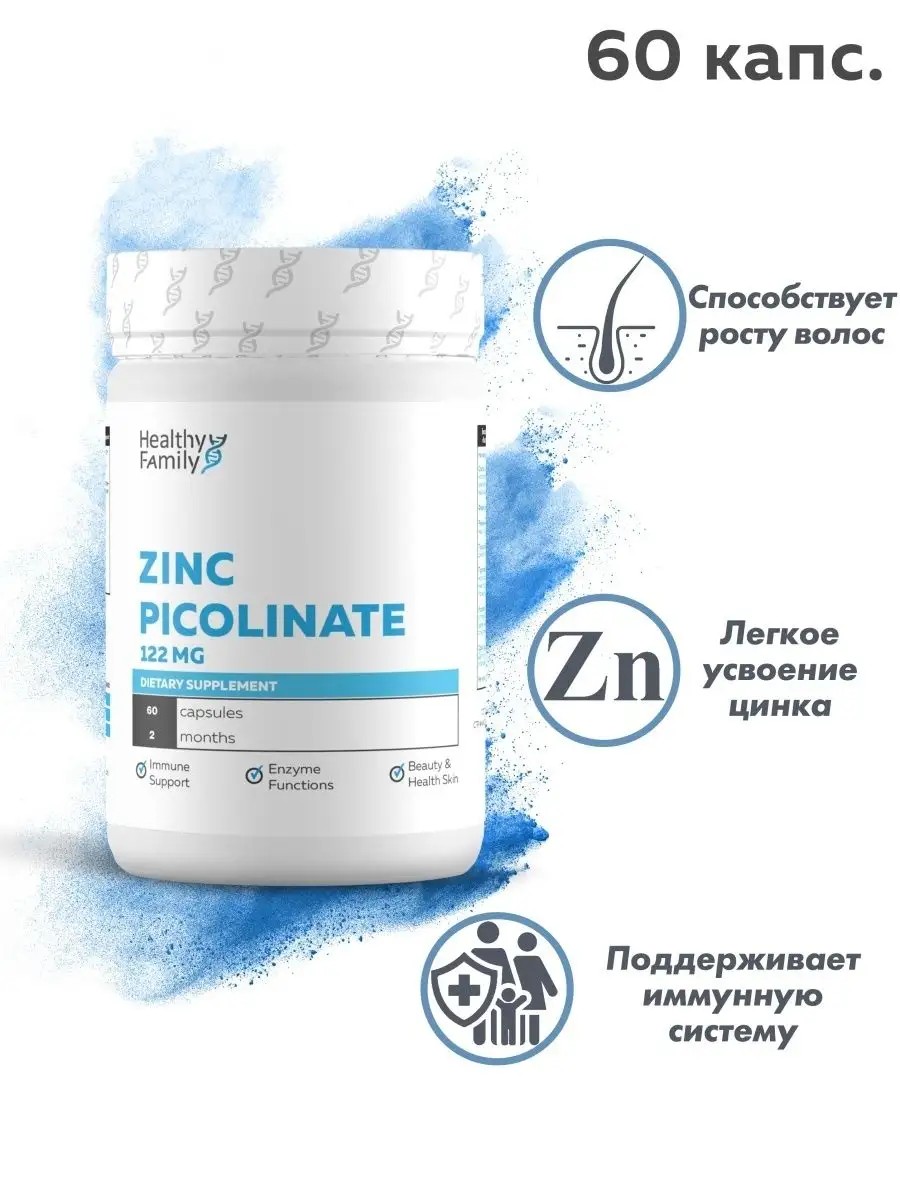 Healthy family Цинк пиколинат для иммунитета и здоровья в капсулах, 60 шт