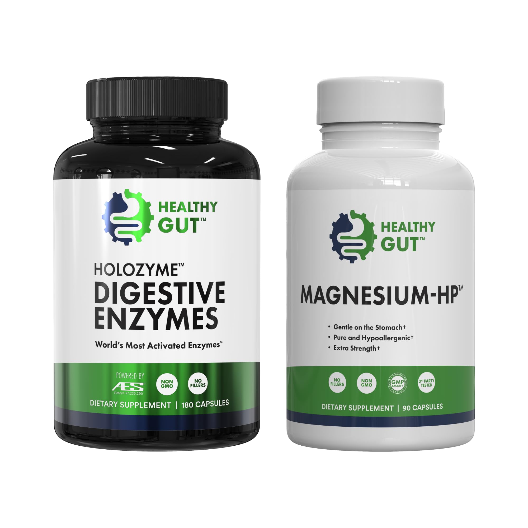 Healthy Gut HoloZyme Digestive Enzymes 180 Capsules and Magnesium-HP 90 Capsules