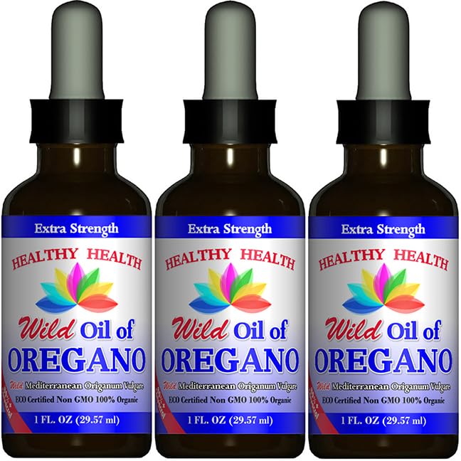 Healthy Health Oregano Oil - Wild Mediterranean - ECO Certified Organic (3 Pack) Extra Strength 83% Carvacrol Liquid Immune Support Aceite de Oregano Non GMO 1 fl. oz