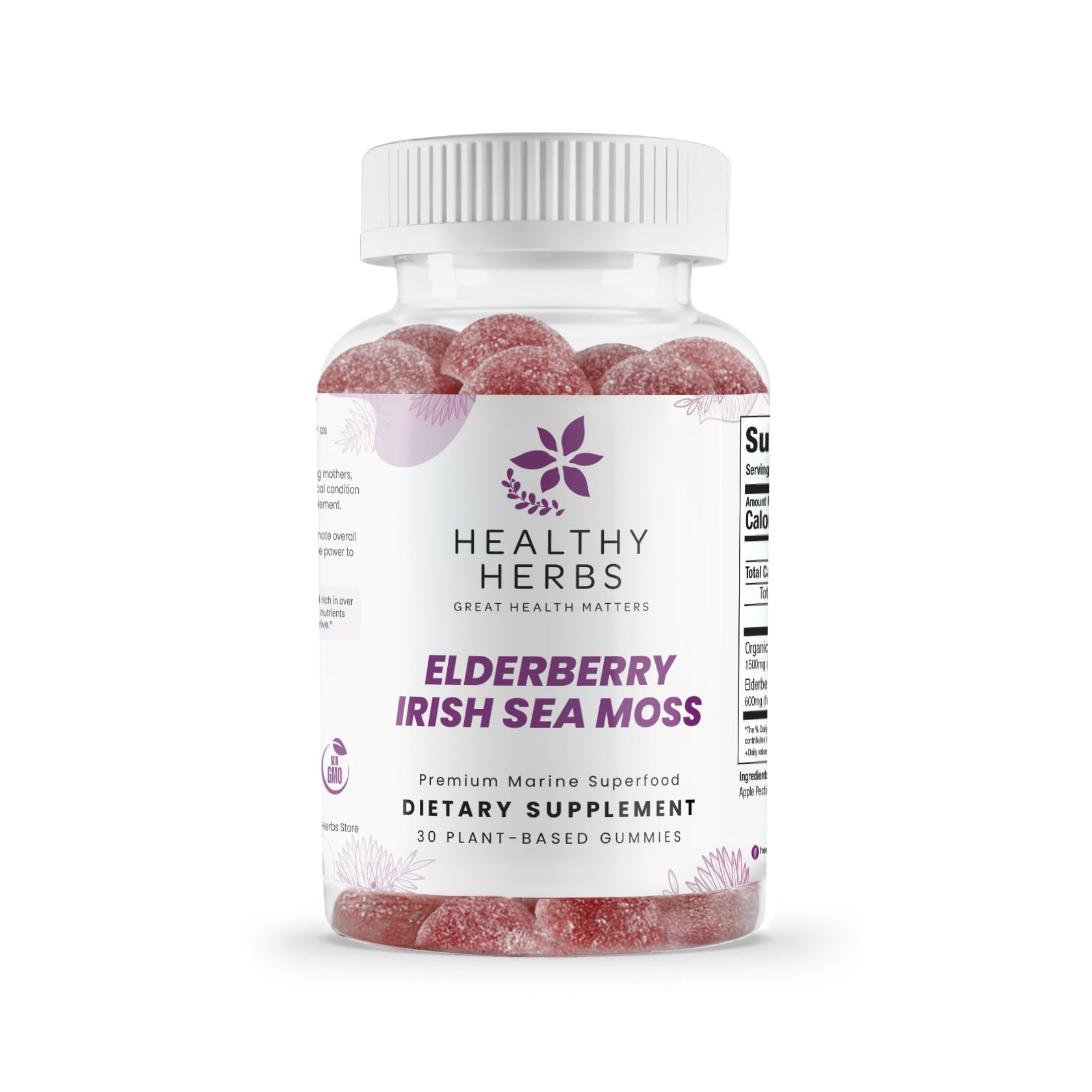 Healthy Herbs Organic Sea Moss Gummies - Concentrated 2100mg Irish Sea Moss + Elderberry Essentials Blend - Advanced Once-Daily Formulation Made with Apple-Extracted Gummy (30 Count)