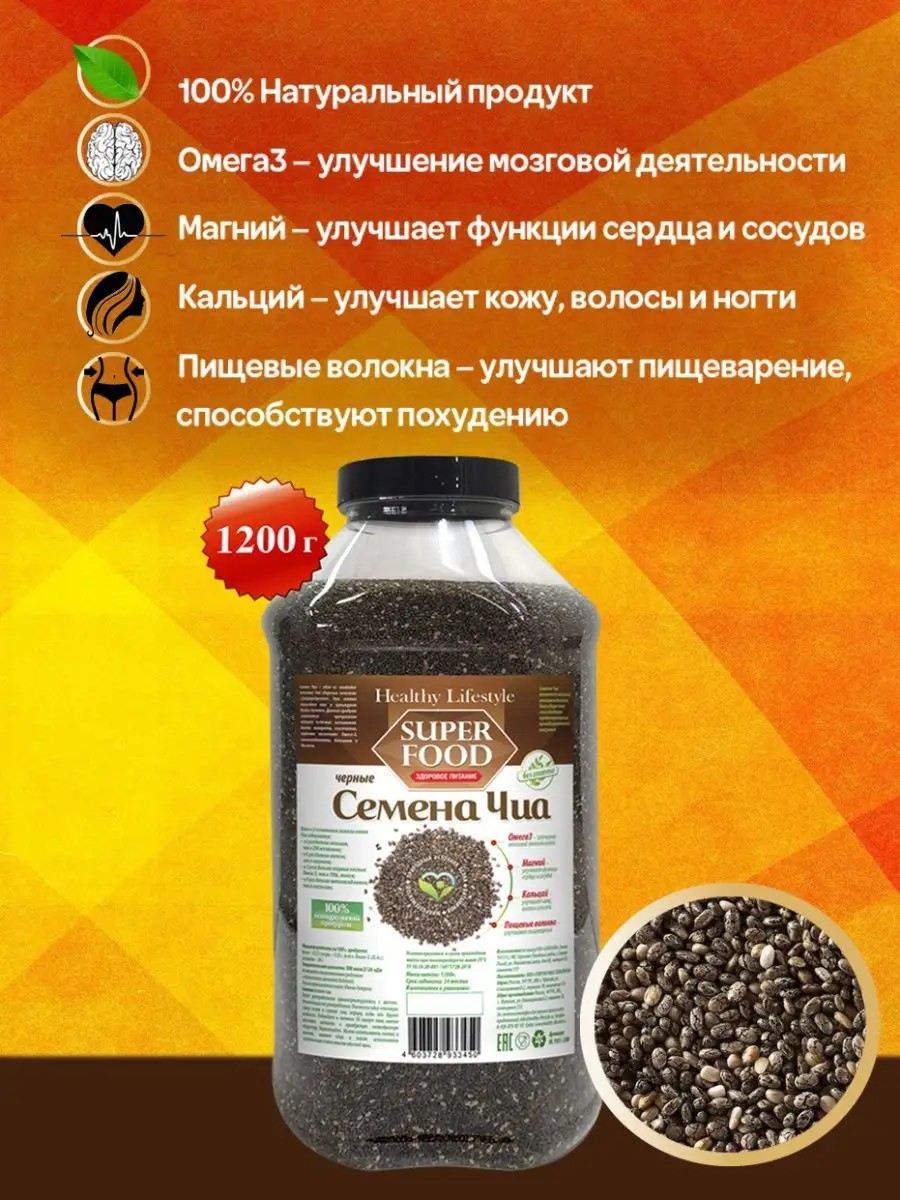 Healthy Lifestyle Семена ЧИА черные продукты для похудения, веган 1.2 кг