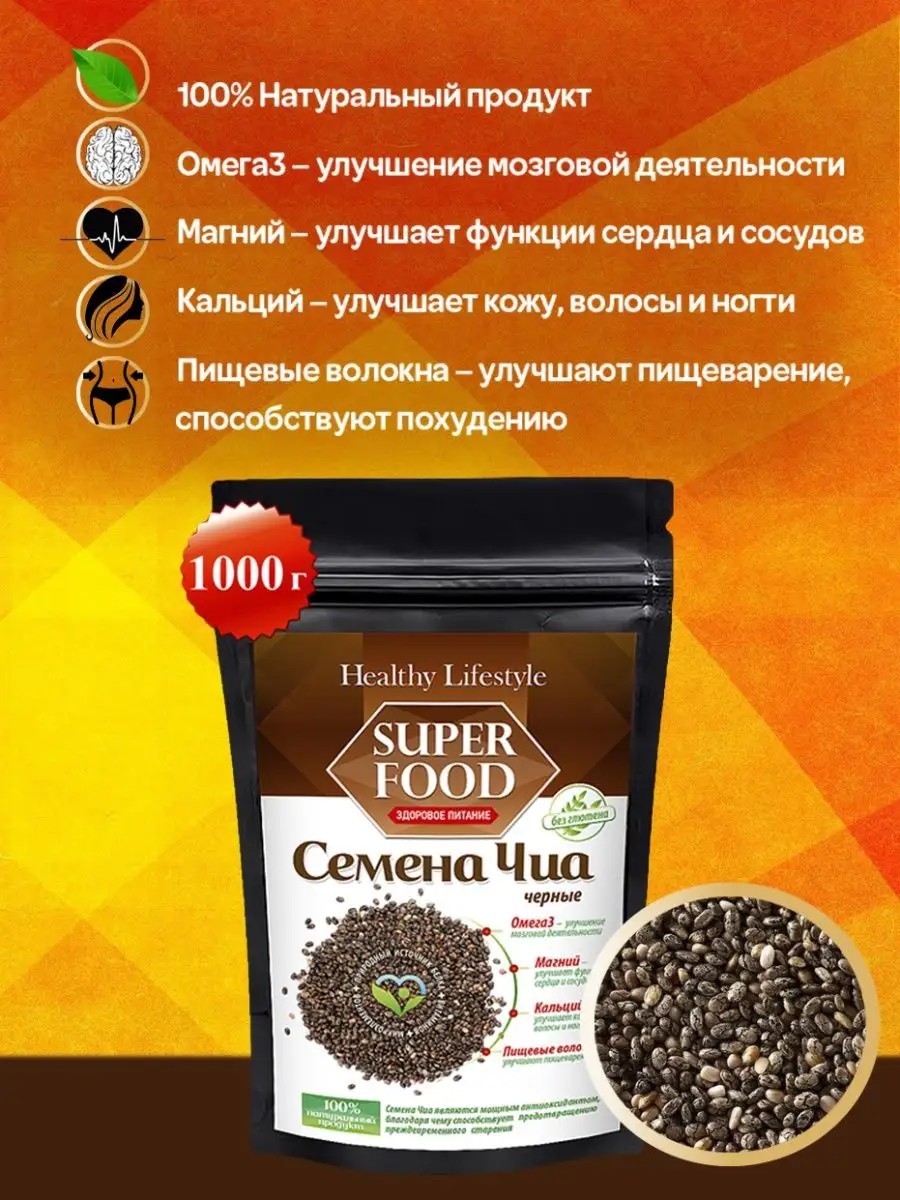 Healthy Lifestyle Семена ЧИА черные продукты для похудения, веган 1 кг