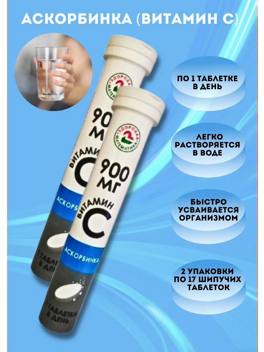 здоровая математика Аскорбиновая кислота шипучая 900 мг 2уп по 17 шт