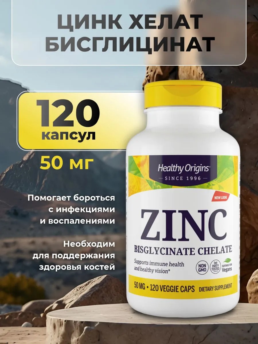 Healthy Origins Комплекс витаминов "цинк хелат бисглицинат" для мужчин, 120 капсул