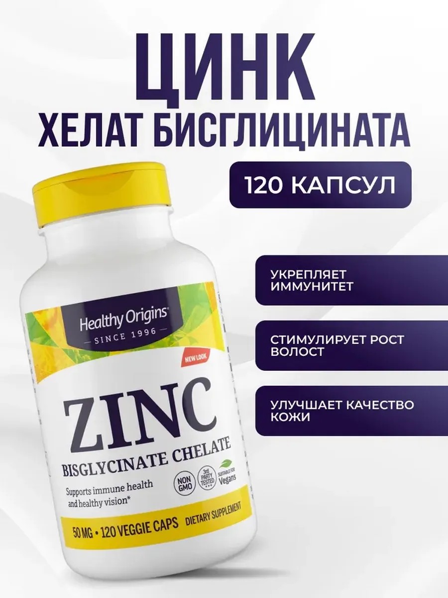 Биологически активная добавка к пище "Цинк бисглицинат" от Healthy Origins представляет собой эффективное средство для укрепления организма и поддержания здоровья кожи. Каждая капсула содержит 50 мг цинка в виде хелата бисглицината, что обеспечивает высокую степень абсорбции и биодоступность элемента. Цинк играет ключевую роль в поддержании иммунной системы, способствует заживлению ран и улучшает состояние кожи. Также этот микроэлемент помогает контролировать аппетит и способствует общему укреплению организма. Добавка подходит для ежедневного употребления взрослыми, но не рекомендуется применять во время беременности, лактации и детскому возрасту из-за возможных противопоказаний.