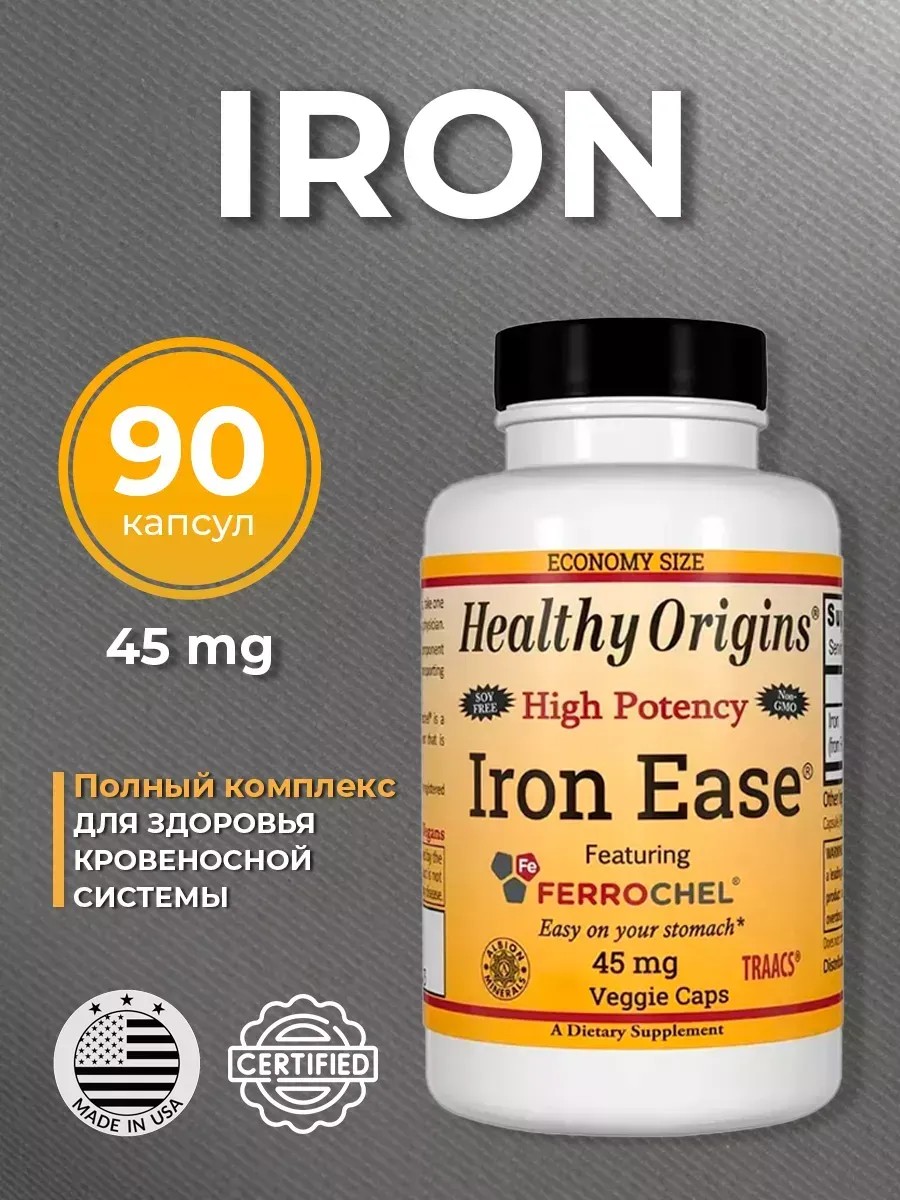 Healthy Origins Железо хелатное бисглицинат 45мг 90капс