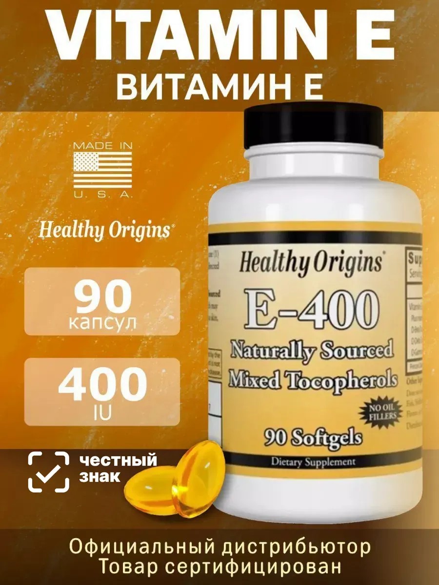 Healthy Origins Витамин Е для иммунитета 90 капсул 400 ме