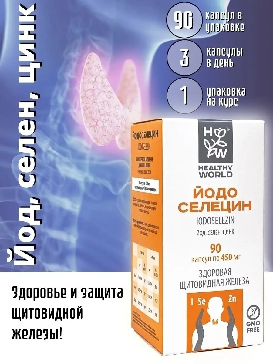 HEALTHY WORLD ЙОДОСЕЛЕЦИН/для щитовидной железы йод селен цинк