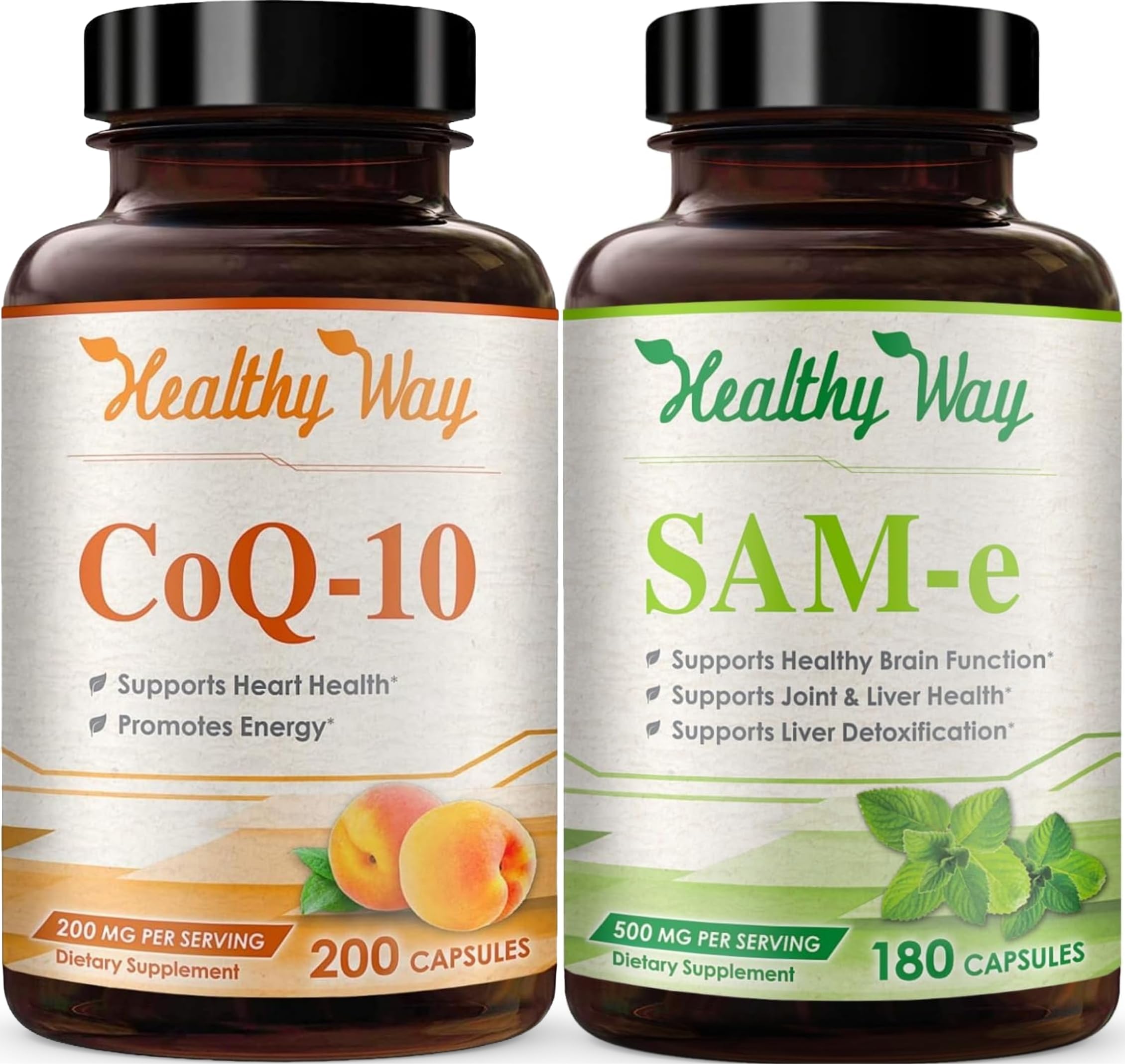 HealthyWayRx 500mg SAM-e & Coenzyme Q10 200mg CoQ10 Supplement Bundle - Brain Mood Focus and Energy Support Bundle with CoQ10 and S-Adenosyl-L-Methionine Capsules (Over 6 Month Supply)