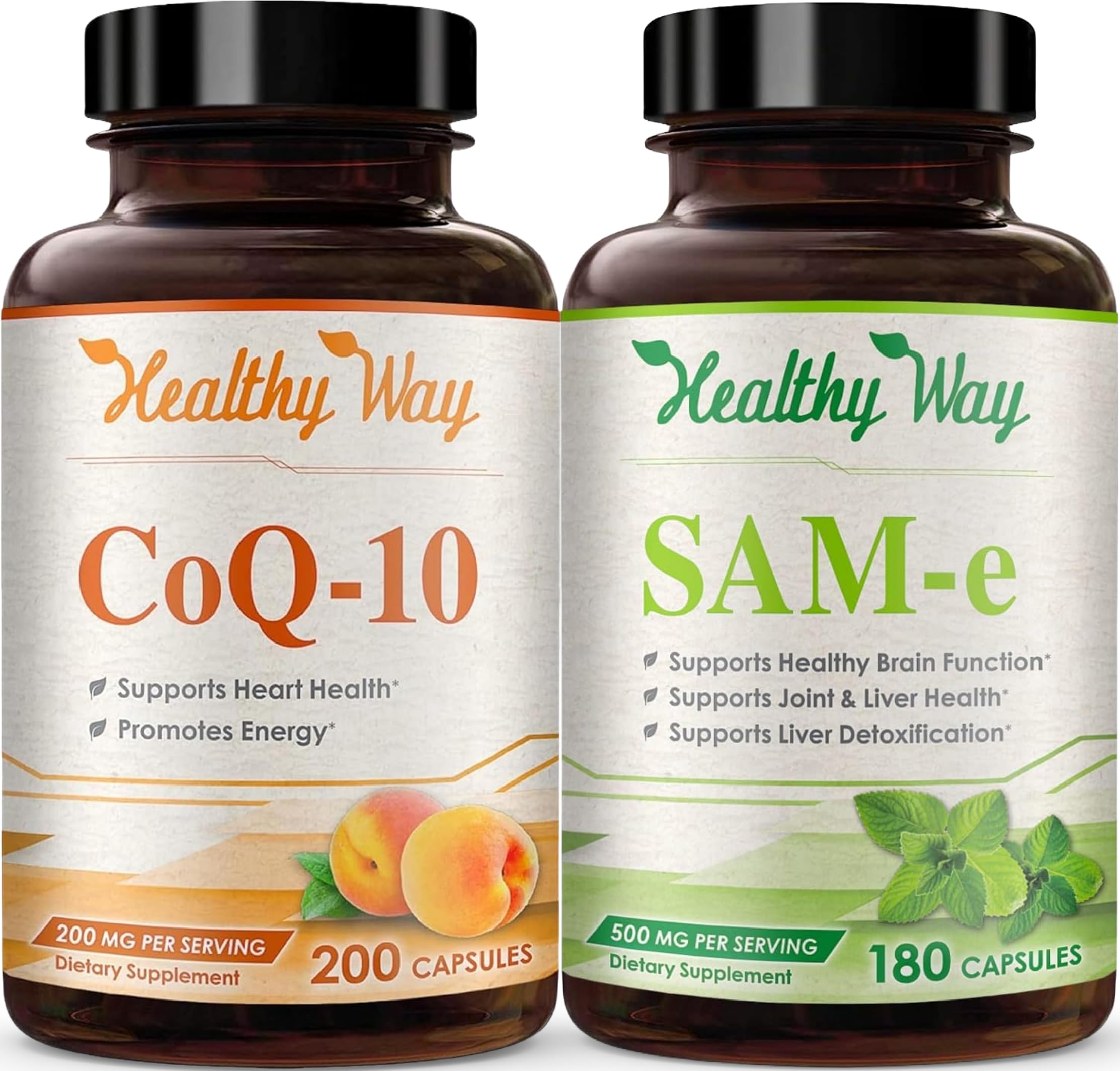 HealthyWayRx 500mg SAM-e & Coenzyme Q10 200mg CoQ10 Supplement Bundle - Brain Mood Focus and Energy Support Bundle with CoQ10 and S-Adenosyl-L-Methionine Capsules