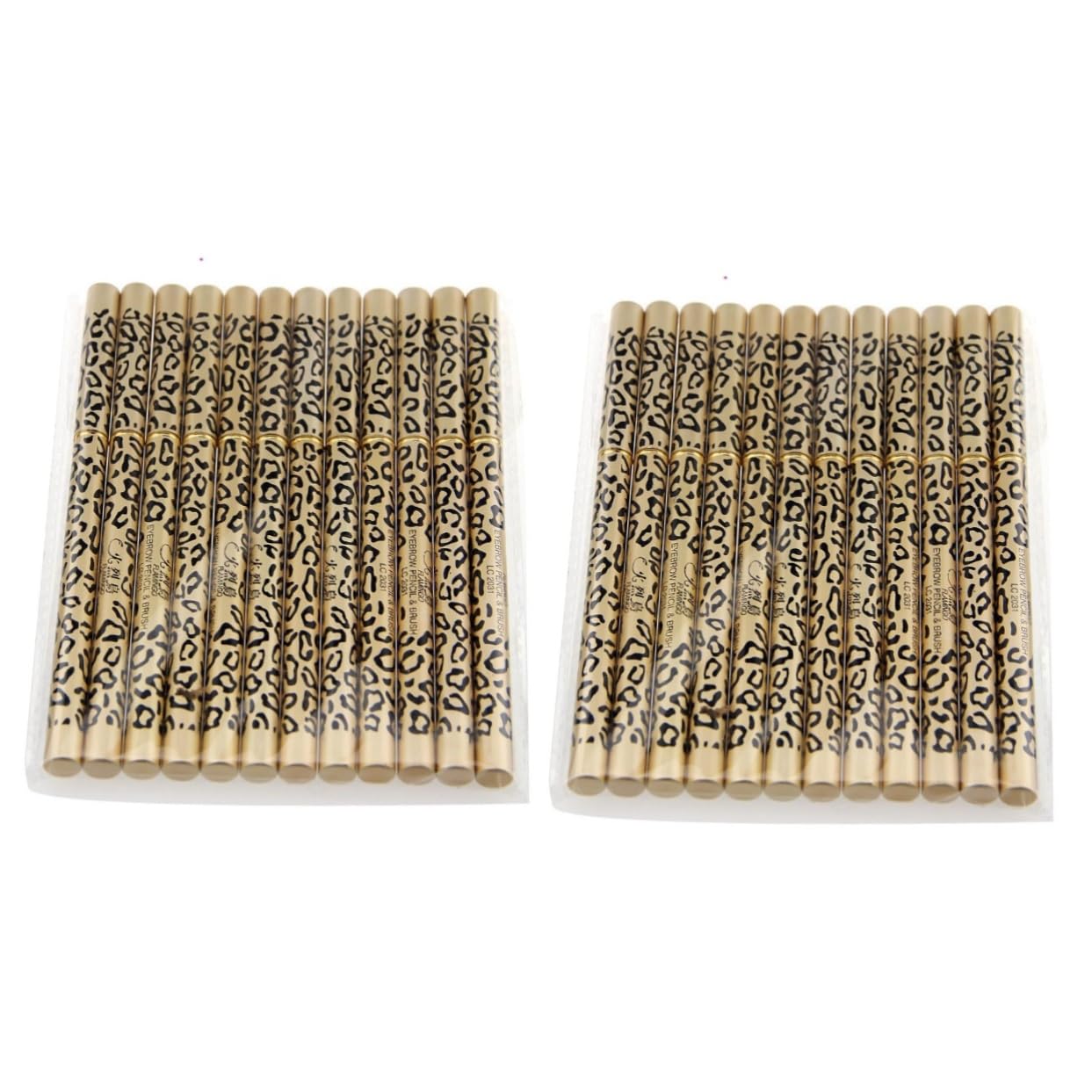 Package Include 2 Set of 12pcs Leopard Shell Waterproof Double-ended Eyeliner Eyebrow Pencil Brush Eyebrow Makeup Pens (Black) Features - Each : about 14.5cm Eyebrow pencil brush. - Shell material: durable hard alloy (Leopard shell) Waterproof eyebrow pencil. - Color of pen point: black Eyeliner pencil with brush. - Double-ended design: it is the combination of an eyebrow pencil and a brow comb brush, for your professional make-up. - Natural looking, waterproof design, and long lasting Eyebrow pencil black. - The texture is not too and not too hard so you can fill in brows naturally and create fake brow hairs in sparse areas Eyebrow pencil with brush. - Easy to apply and remove. - every woman and her dynamic modern life. - and Leopard Shell Waterproof Double-ended Eyeliner Eyebrow Pencils Pen Brush Eye Makeup Tools - 12 pieces of the double-ended eyeliner eyebrow pencils with brush in one set will be sold together. Goods Description brow pencil Natural, neutral colors blend into brows easily for a , polished look.Eyebrow pencil black The item is a set of 12pcs fashion and practical double-ended eyeliner eyebrow pencils with brush, which features cool leopard shell design, and is the combination of eyebrow pencil and brow comb brush for your professional make-up. The texture is not too and not too hard so you can fill in brows naturally and create fake brow hairs in sparse areasEyebrow pencil with brush-- natural looking, waterproof design, and long lasting. Waterproof eyebrow pencil-- color of pen point: black. shell material: hard alloy (leopard shell). each : about 14.5cm. Eyeliner pencil with brush-- 12 pieces of the double-ended eyeliner eyebrow pencils with brush in one set will be sold together. eyebrow pen-- the texture is not too and not too hard so you can fill in brows naturally and create fake brow hairs in sparse areas,eyebrow pencil black. Eyebrow pencil brush-- double-ended design: it is the combination of an eyebrow pencil and a brow comb brush, for your professional make-up,brow pencil.