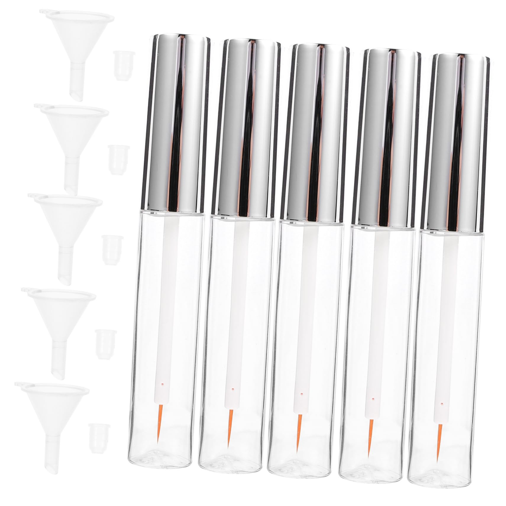 Package Include 7 set of 5PCS DIY Transparent Plastic Empty Mascara Tube Mascara Bottles Makeup Eyelashes Tube Eyeliner Vials with Eyeliner Wands and Funnels for oil Essential Oil Characteristics - Color: Transparent eyeliner tube empty - Material: Plastic mascara tube with wand - Size: 11.00X1.50X1.50cm 4.32X0.59X0 eyeliner tubes empty. - Easy to use and clean. Great choice for beginners or amateurs to practice or makeup artists makeover empty mascara tube and wand. - makeup tools for and ladies. Applicable in cosmetic stores, markets, makeup salons, beauty makeup products wholesalers or retailers mascara bottles for essential oils. - Great value, expand the lifespan of your eyeliner, mascara, eyebrow and save you more cost in makeup products with these empty bottles eyeliner bottle with brush empty plastic mascara tube refillable cosmetic containers eyeliner small bottle oil tubes with funnel clear silver. - Lightweight and portable, convenient for you to carry on trips or travels Mascara Containers Empty. Goods Information mascara bottles for essential oils The set of items include 5pcs transparent empty eyelashes tubes with , 5pcs rubber inserts and 5pcs plastic funnels, enough replacements for spare use.mascara tube The Eyeliner brush Vials are made of premium plastic for durable and long-lasting use.empty mascara tube and wand Excellent makeup tools for and ladies.Mascara Tubes Empty Perfectly store your oil and well preserve the beneficial compounds in the oil with this empty mascara tube.mascara tube vial Suitable for Cosmetic stores, markets, makeup salons, beauty makeup products wholesalers or retailersEyeliner tubes empty: packing list: 5 x 7 ml empty mascara tube, 5 plastic funnels. Empty eyelash serum tube: premium plastic durable and long-lasting use. Mascara tube with wand: it comes with a small funnel so you can easily pour mascara or oil into the bottle. Oil: preservation vials for liquid eyeliner, mascara, eyebrow serum, and oil. Oils: easy to use and clean. great choice for beginners or amateurs to practice or makeup artists makeover.