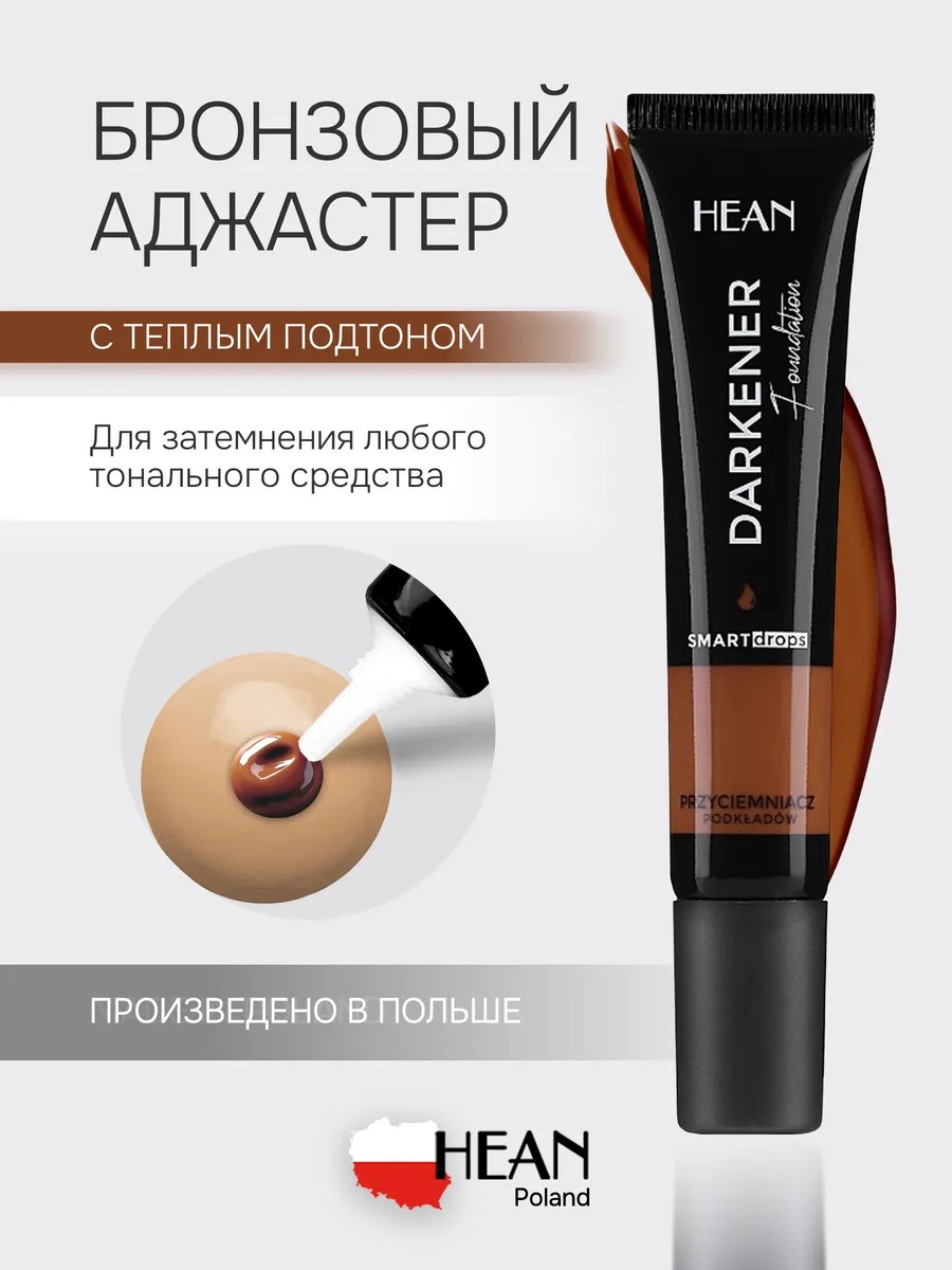 The Foundation Adjuster is a professional cosmetic product from Hean for correcting the shade of your foundation. Ideal for makeup artists and everyday use! The Foundation Adjuster helps you quickly find the perfect foundation shade. The white adjuster will lighten your foundation one or more shades, while the dark adjuster will darken it, making the color richer and deeper. Now you don't have to struggle to find the perfect foundation or cream; the Foundation Adjuster lets you vary shades using just one product. Simply add a drop or two of the Foundation Adjuster and apply it. That's it! Your foundation or cream won't change texture or become runny, maintaining its original quality. Foundation applies smoothly, without creasing or streaking, perfectly adapting to your skin tone. Pair your favorite foundation with the highlighter and enjoy stunning makeup.