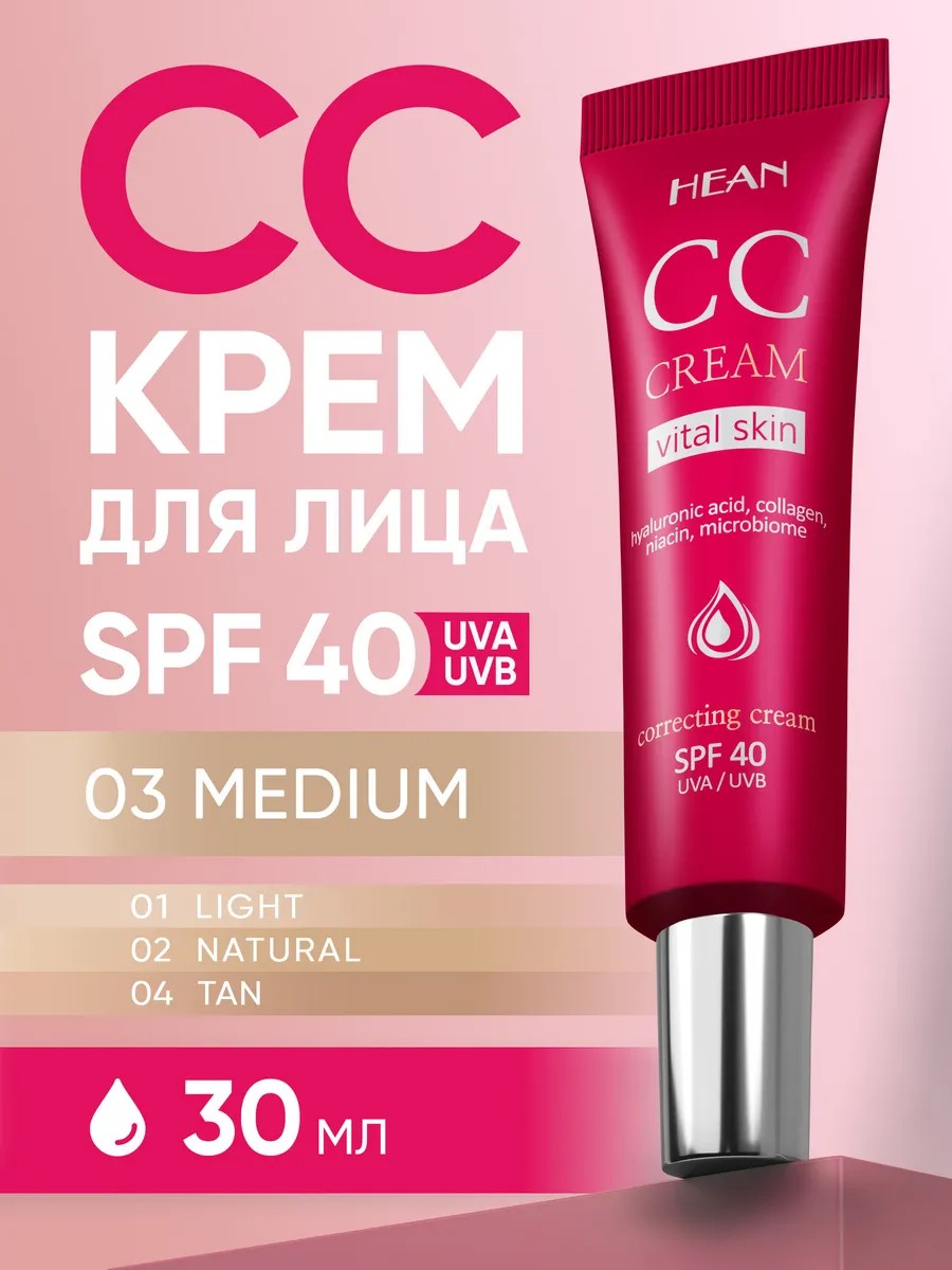 This sunscreen moisturizing CC cream contains a mineral filter with SPF 40, which protects your skin from the harmful effects of UVA and UVB rays, preserving its beauty and health. Directions: Apply in small strokes to cheeks, forehead, and chin, blending in circular motions with your fingertips, a brush, or a sponge. With this foundation, your skin will look natural, fresh, and radiant every day! Hean products make a great gift for a woman, mother, girlfriend, or friend.