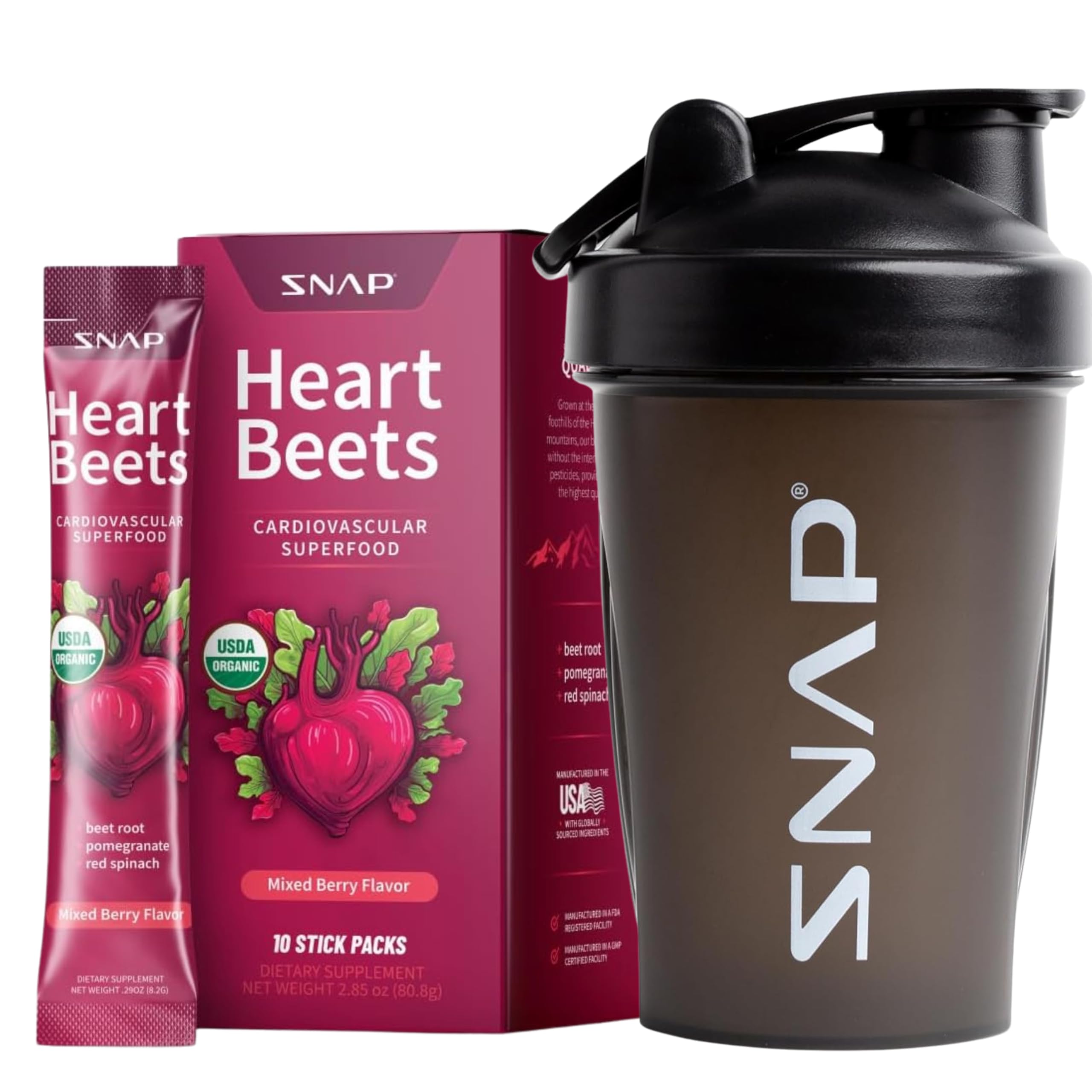 TRUSTED QUALITY, CLEAN INGREDIENTS: Made with USDA Organic-certified ingredients and manufactured in the USA in a cGMP facility. Heart Beets is vegan, caffeine-free, soy-free, allergen-free, and crafted without artificial sweeteners or preservatives. SIMPLE TO USE, DELICIOUS TO DRINK: Enjoy a naturally sweet Mixed Berry flavor with no added sugar. Just open a stick, mix with water, and drink — perfect for a daily routine or pre-workout ritual without the hassle of measuring. ANTIOXIDANT-RICH SUPERFOODS: Harness the antioxidant power of beetroot and pomegranate. Each serving delivers plant-based polyphenols to help protect against oxidative stress and support overall cardiovascular wellness. DAILY NITRIC OXIDE ENERGY SUPPORT: Fuel your day with natural energy and endurance — no caffeine or stimulants. These single-serve sticks help support blood flow and oxygen delivery, boosting stamina and heart function for both men and women. CARDIOVASCULAR SUPPORT ON-THE-GO: Each Heart Beets Stick Pack is a convenient, travel-friendly solution for supporting heart health. Formulated with organic beetroot, red spinach, and pomegranate, this nitrate-rich blend promotes healthy circulation and vascular function in a quick-dissolving powder.