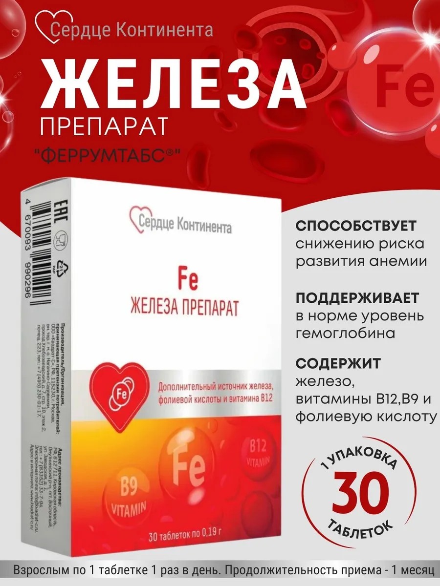 сердце континента Железа Препарат Феррумтабс 30 таблеток