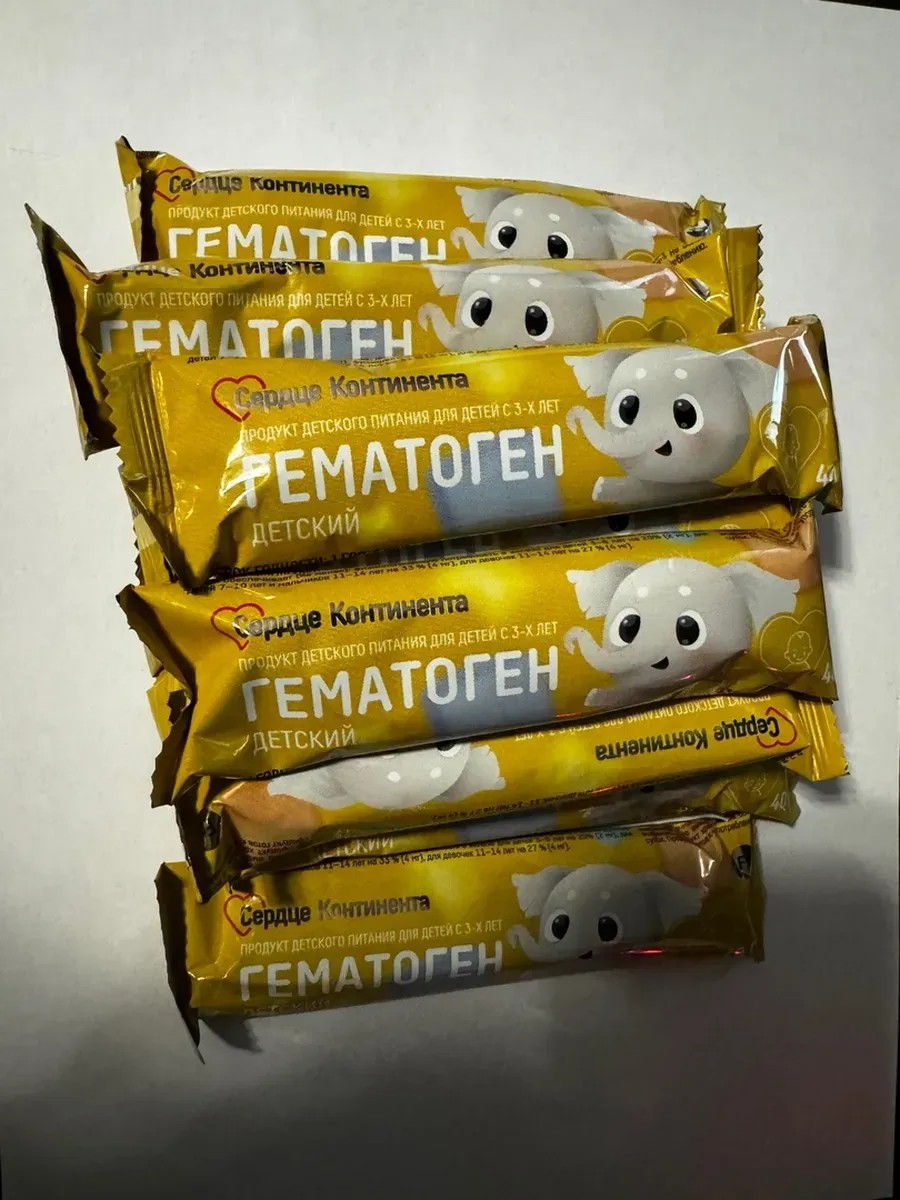 Гематоген по классической рецептуре: сахарный песок, молоко цельное сгущенное с сахаром, патока крахмальная, ванилин и альбумин - порошок гемоглобина, насыщающий организм железом.