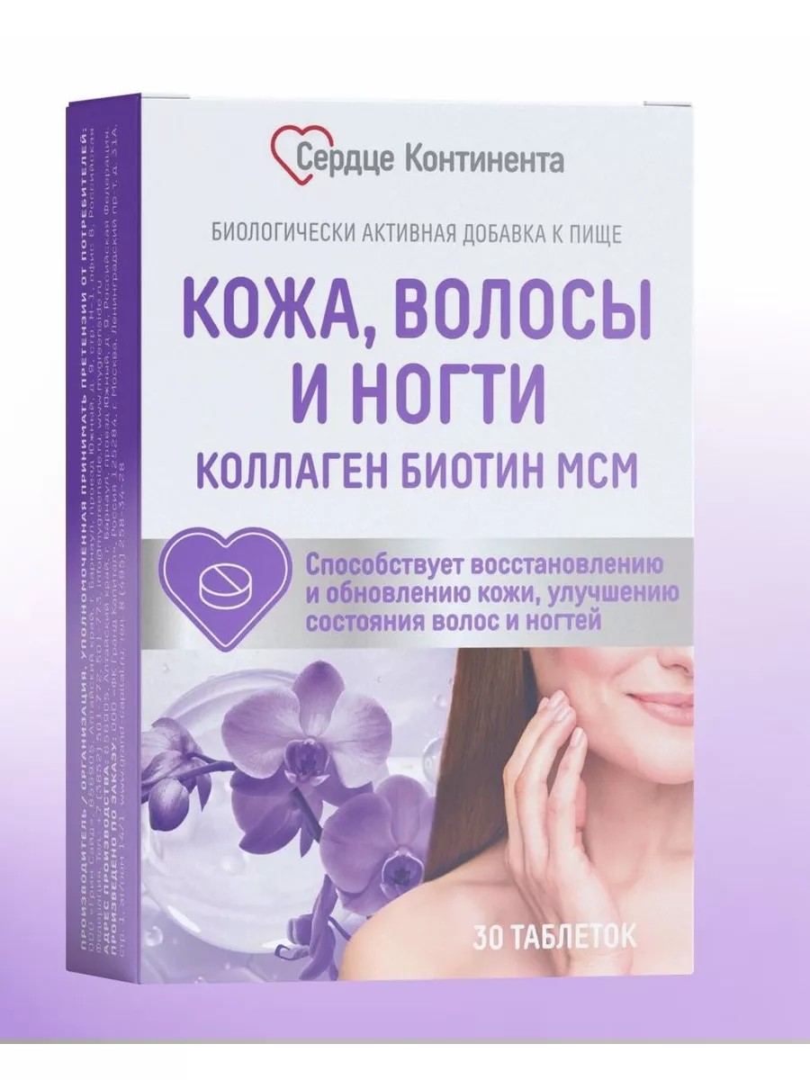 СЕРДЦЕ КОНТИНЕНТА Кожа Волосы Ногти Коллаген Биотин МСМ таб. 1200мг №30