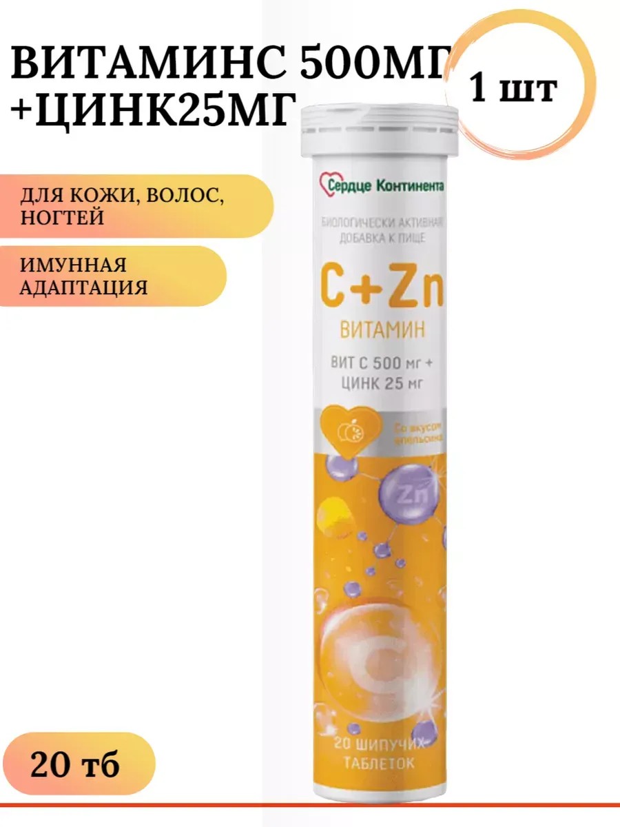 сердце континента Витамин С + цинк шипучий 20 тб / 1 шт