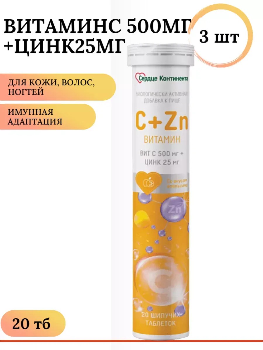 сердце континента Витамин С + цинк шипучий 20 тб / 3 шт