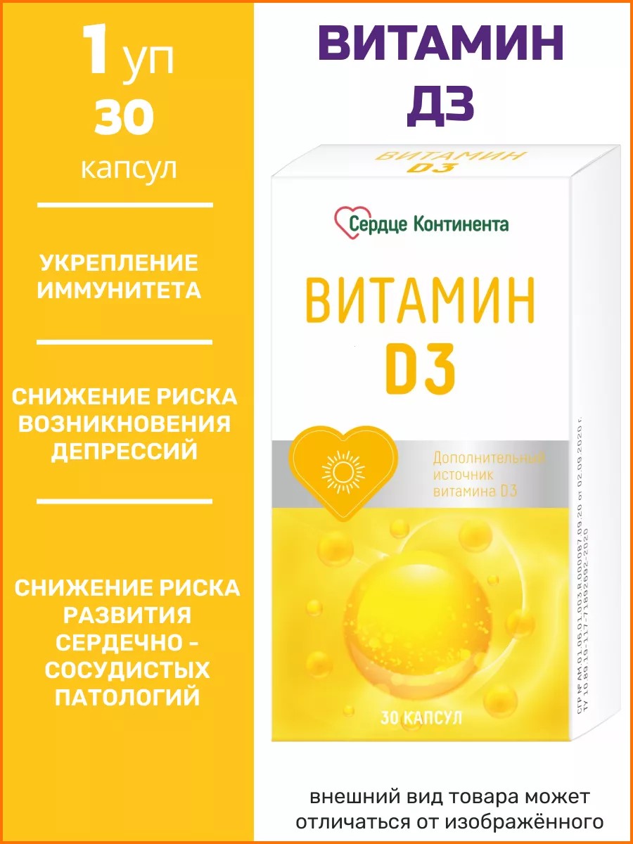 Сердце континента Витамин D3 2000 ME капсулы №30