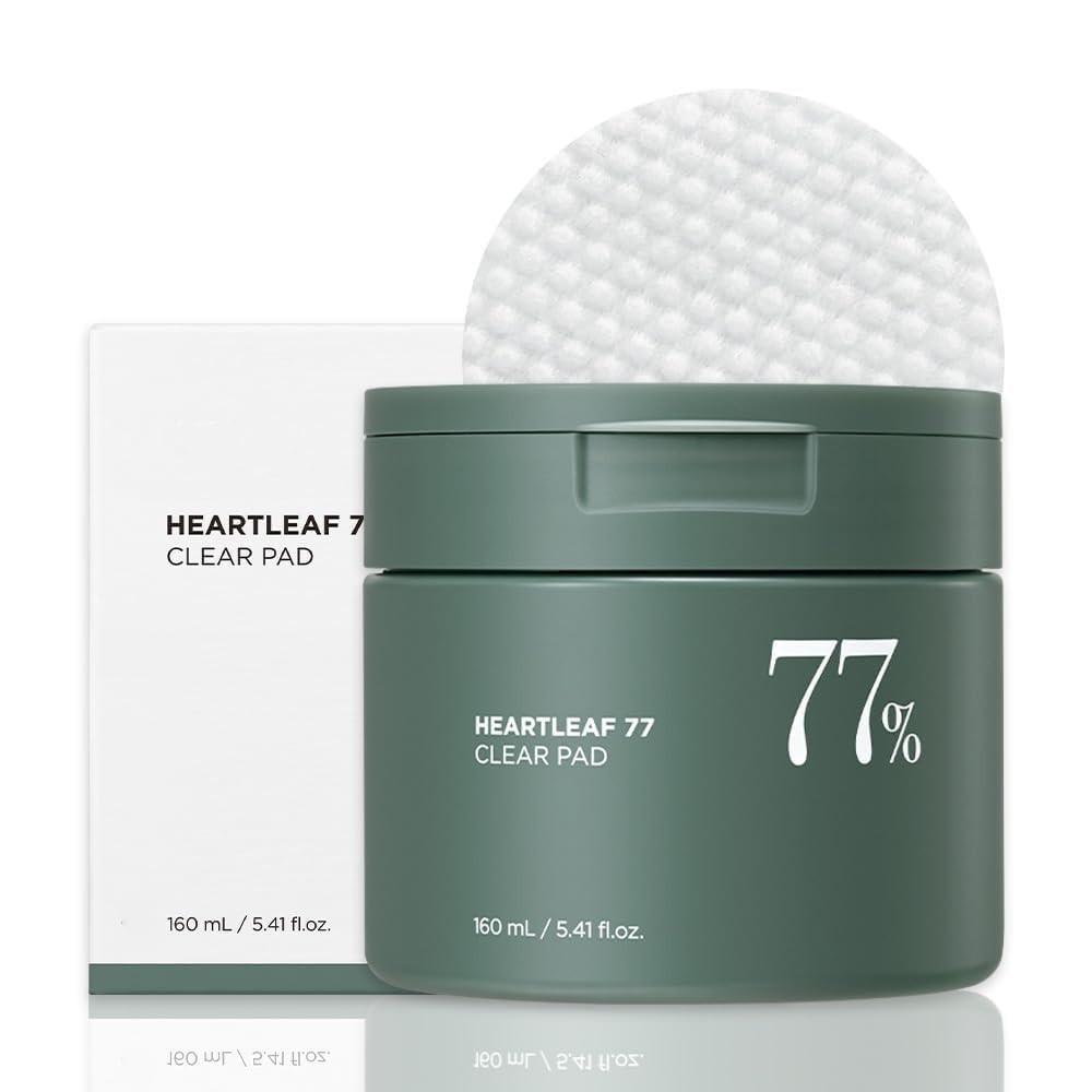 In order to offer mild and hypoallergene skin care, we have compensated for the pH of this pad to a low acidity.PH 4-5 is similar to healthy skin and receives the oil moisture compensation.Formulated with an aqueous, non -sticky texture with 77 % Korean heartblate extract - instead of water, we have filled 77 % of this pad with Heartleaf extract.This would work like their daily toner pad.Hypoallergene skin care is possible if you have our Heartleaf 77 Clear Pad.You can now experience a slow but non -irritating dead skin care.It would also offer moisturizing effect.Daily toning pads that are perfect for immediate calming your sensitive skin and help to tighten enlarged pores of your skin.One-step-Pha-toner pads: remove dead skin cells gently to reduce blackheads, whiteheads and outbreaks.
