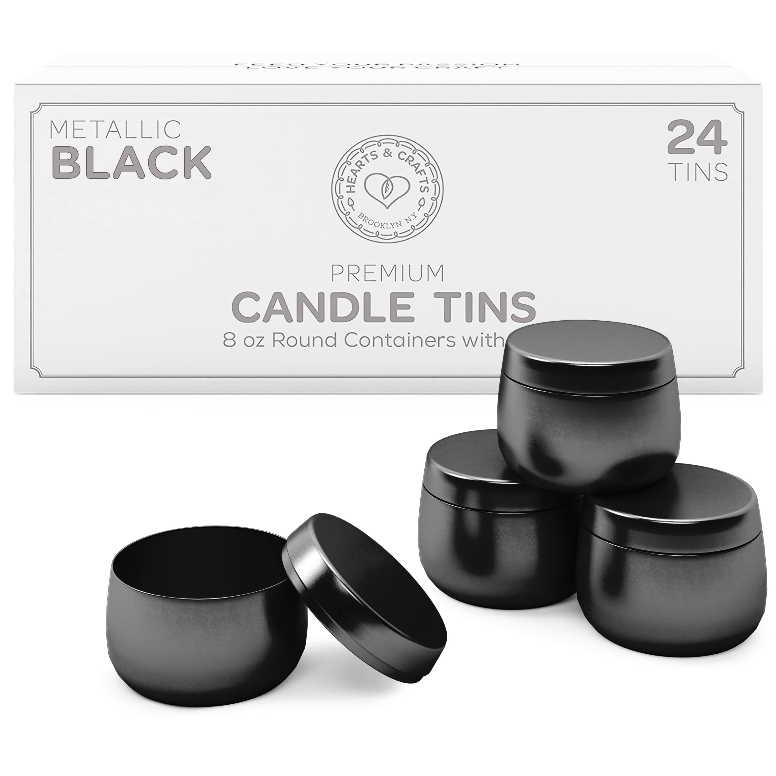 HAPPINESS DELIVERED - From the very heartbeat of Brooklyn, we supply you with all the necessary items to turn your home into your unique craft and comfort zone. Hearts & Crafts stands on a foundation built from mother nature herself. Let us fill your world with the intrinsic elements of ours. As with all candle products, burn within sight & keep away from flammable objects, children & pets. WHAT’S INCLUDED - 24 Hearts & Crafts 8-oz. black tin candle containers with lids. GREAT VALUE - Get 24 8 oz candle jars with lids for a reasonable price! What could you use 24 of them for? Better to have pretty containers on hand than none to hold an unexpected trinket or two. That way, you never misplace one or leave a mess. Everybody's happy. MULTIPURPOSE DECOR - We love using them as jars for candles for making candles, but our candle vessels come with lids and may be used for other things. With these jars for candles, you can now store candy, buttons, jewelry, candle-making supplies, or many small items in plain sight and easy reach. ELEGANT TIN CANDLE JARS - Add a touch of sparkle to your living space with our painted metal candle containers that come in classy black with a matte finish. Use them to keep objects neatly organized away or to spruce up your DIY candle making projects. Who says functional meant boring and tasteless?.