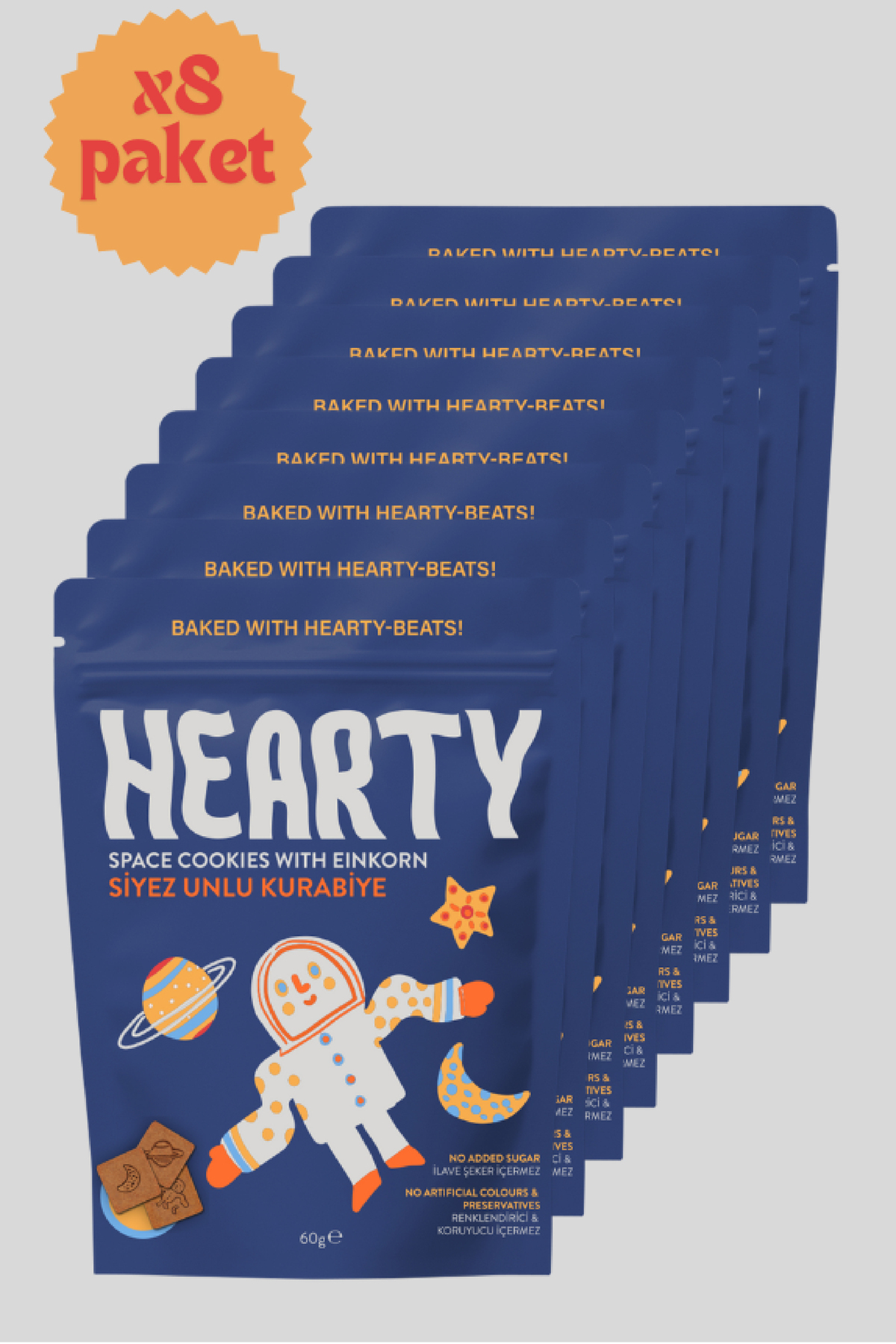 Siyez unlu kurabiye, Hearty markasi tarafindan çocuklara özel olarak gelistirilmis, ilave seker, katki maddesi ve renklendirici icermeyen, yuksek lif ve protein oranina sahip bir atistirmalik ürünüdür. Siyez unu ile hazirlanan bu tarif, ince ögütülmüs bilesenleri sayesinde 6 aydan büyük çocuklar için kolay sindirilebilecek bir yapi sunar. Uzun süreli arastirmalar sonucunda elde edilen dengeli ve zengin lezzeti, sadece çocuklar degil, yetiskinler tarafindan da keyifle tüketilebilir.