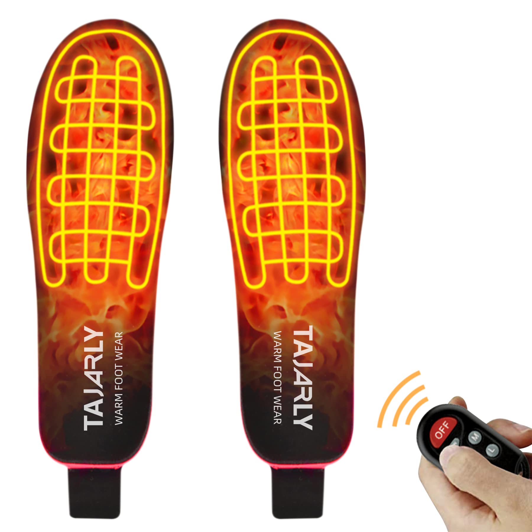 ?Cut To Fit Size & Customer Support?-- TAJARLY rechargeable battery heated insoles could adjustable to your shoe size, trim the soles for the perfect fit following size guide. Strict quality control is the foundation of our survival. After purchg the product, if there is any quality problem, we will respond within 24 hours and will provide you with the best solution!. ?Environmentally Material?-- Rechargeable heated insole surface is made of high-quality PU microfiber cloth to achieve a soft, comfortable and breathable, which is not easy deformed when folded, soft velvet upper and has no peculiar smell. There is no harm to people. You can use it in skiing, fishing, mountain climbing, hunting, motorcycle, cycling, camping, etc. Heated insoles could solve your cold feet problem in the freezing weather. ?Big Battery Capacity?-- TAJARLY warm heated insoles battery capacity is 3000mA, it can be charged 500 times, and it can be used for 4-10 hours. After safe inspection, high-density high-density lithium polymer batteries that can be used even at -20 °C can be safely used and obtained official safety certification. Our heated insoles for women adopt the type-C charging port, it is waterproof and washable, so there is no need to worry about cleaning after long-term use. ?Faster Heating?-- Heated insole is made of latest carbon