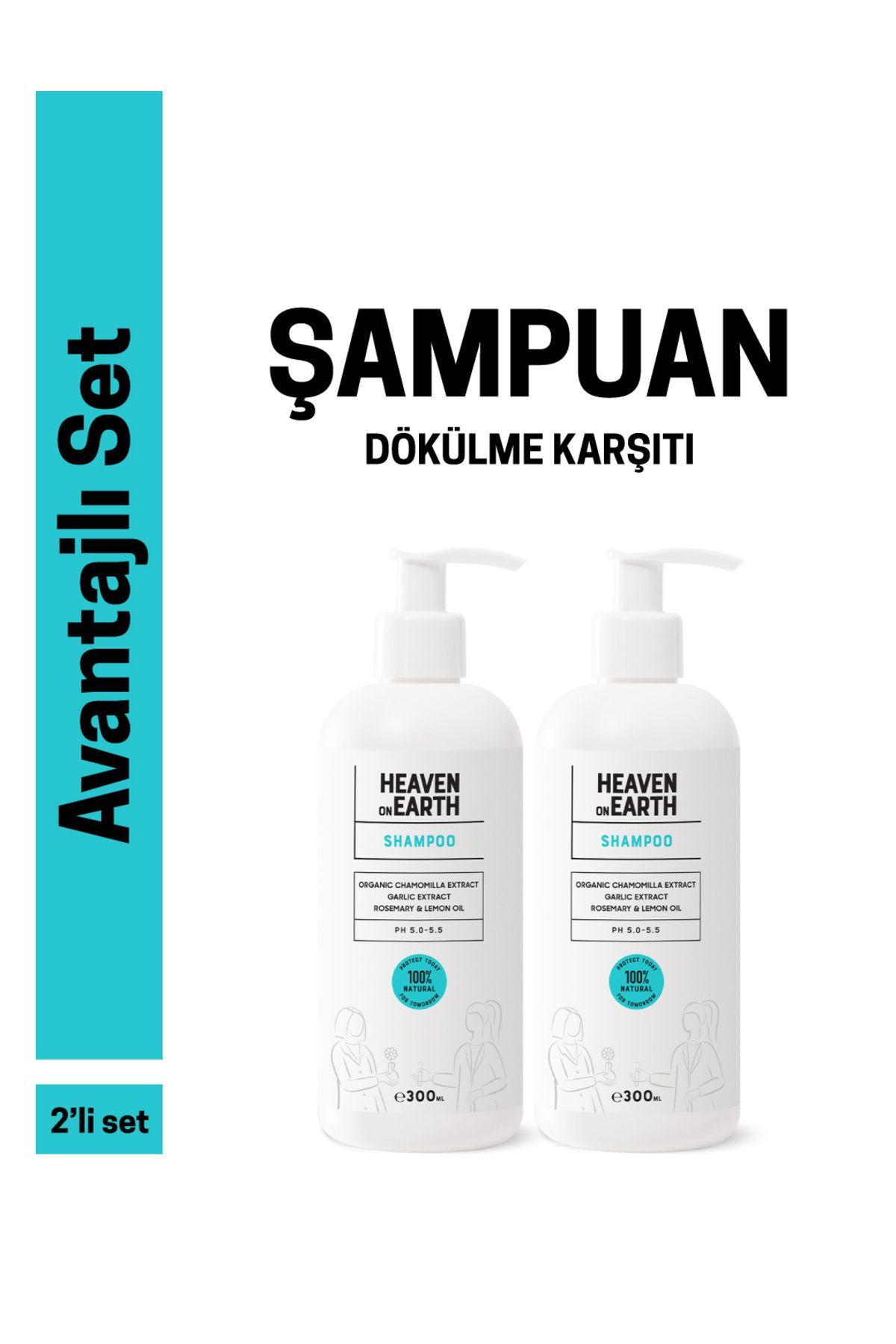 Avantajli Set 2'li sampuan toplam 600 ml. Heaven on Earth HonE VEGAN 100 DOGAL ve ORGANIK içerikli , GLUTEN içermeyen sampuanimiz içerigindeki nemlendirici ORGANIK papatya, aloe vera ve aynisefa güçlendirici sarimsak özü canlandirici ORGANIK limon ve ORGANIK biberiye ile saçinizin DOGAL nemini, gücünü, pürüzsüzlügünü ve parlakligini geri kazanmasina yardimci olacaktir. Sarimsak özü saça bakim saglarken, saçin saglikli uzamasina da yardimci olur. Içerigindeki ORGANIK limon, biberiye ve lavanta, ferah kokulari ile saç derisinde rahatlatici ve canlandirici etkiye sahiptir. Düzenli kullanimda, zengin içerikli DOGAL bitkiler sayesinde saç dökülmesinin önlenmesine ve saçlari güçlendirmeye yardimci olur. Dermatolojik olarak test edilmistir. Gluten, paraben, sülfat, fitalat, silikon, petrol türevleri, boya ve parfü m içermez. 100 dogal ve vegan içeriklidir. Geri dönüstürülebilir, gida ile uyumlu, DOP ve BPA içermeyen ambalajlar kullanilmistir.