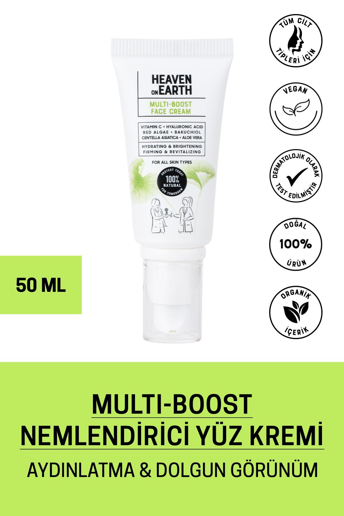 100 Dogal-Organik içerkli ve Vegan Multi-Boost Nemlendirici Yüz Kremi,içerigindeki zengin organik ve antioksidan bilesenler sayesinde cildin ideal birbiçimde nemlenmesine, yorgun ve strese karsi savasmasina yardimci olur. Özel içerigi sayesinde cildinizin ihtiyaç duydugu temel bakimi saglarken, güne canli bir görünüm ile baslamaniz için 4'lü etki gösterir. - Nemlendirme - Canlandirma - Aydinlatma - Dolgun Görünüm Cildin zamanla aydinlik görünmesine, ilk yaslanma çizgilerinin giderilmesine yardimci olurken bu sayede enerjisine kavusan cildin saglikla isildamasini saglar. Tüm cilt tipleri için uygundur.