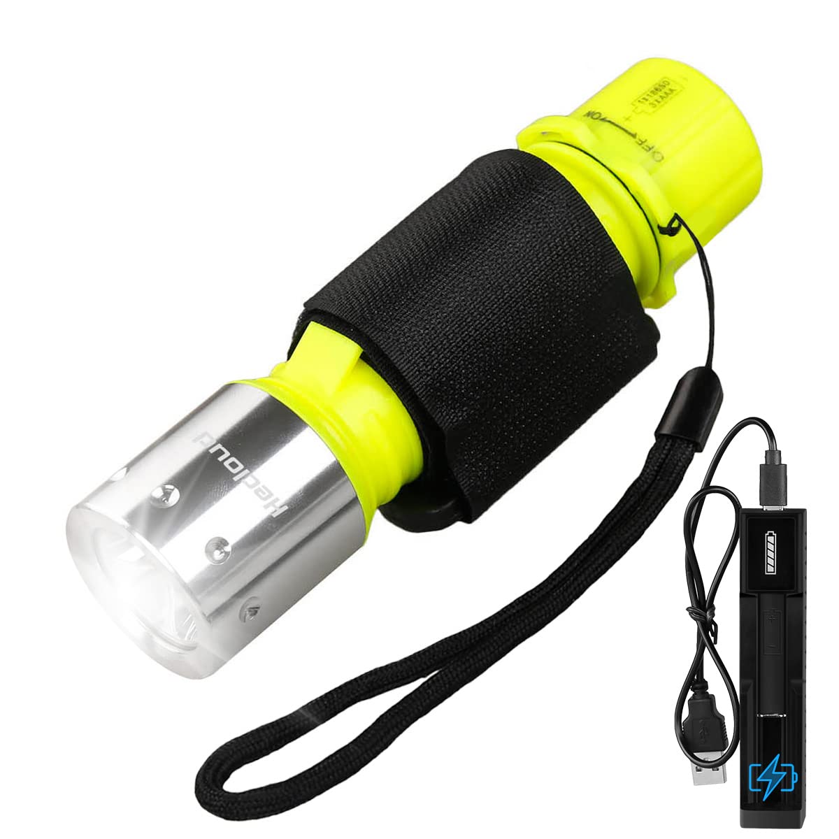 HECLOUD Scuba Diving Flashlight with Rechargeable Power Snorkeling Dive Torch Light IPX8 Waterproof LED Submarine Underwater Lights, 1100 Lumens 3 Modes for Underwater Sports