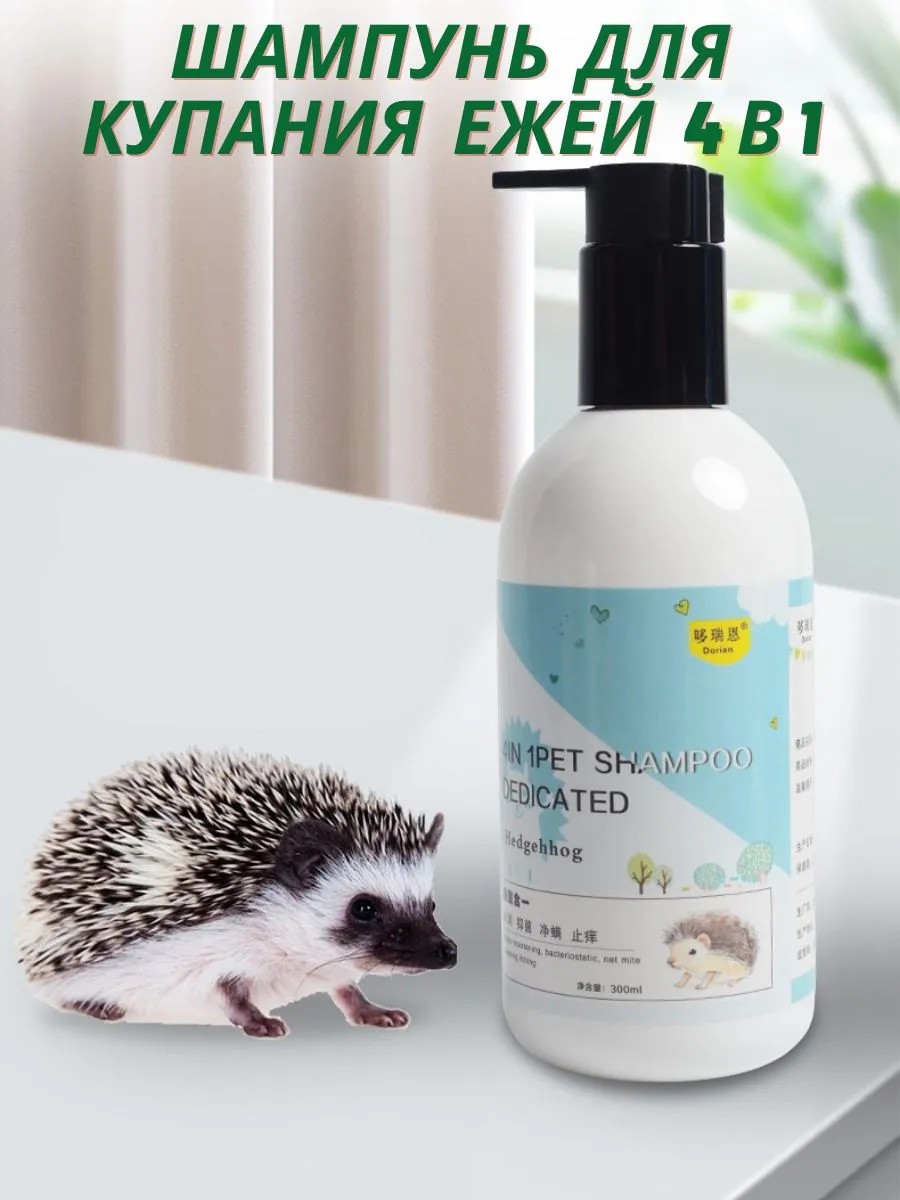 Шампунь для купания ежей 4 в 1 объемом 300 мл. Не содержит отдушек. Предназначен для ухода за шерстью и кожей грызунов, таких как ежи. Содержит экстракты лекарственных растений и эфирные масла. После купания рекомендуется использовать увлажняющее оливковое масло для ухода за шерстью и кожей вашего питомца. Рекомендации по применению: летом 1 раз в 1-2 недели, зимой 1 раз в 3-4 недели. Важно тщательно высушивать питомца феном (с расстояния не менее 20 см), чтобы избежать простудных заболеваний из-за влаги под колючками. Основные характеристики: Тип: Шампунь для животных Аромат: Без отдушки Предназначено для: Для грызунов Вид ухода: Уход за шерстью и кожей Объем бутылки: 0.3 л Упаковка: Бутылка с дозатором Страна-изготовитель: Китай Срок годности: 1095 дней Атрибуты: Материал: Пластик (бутылка) Цвет: Случайный (упаровка)