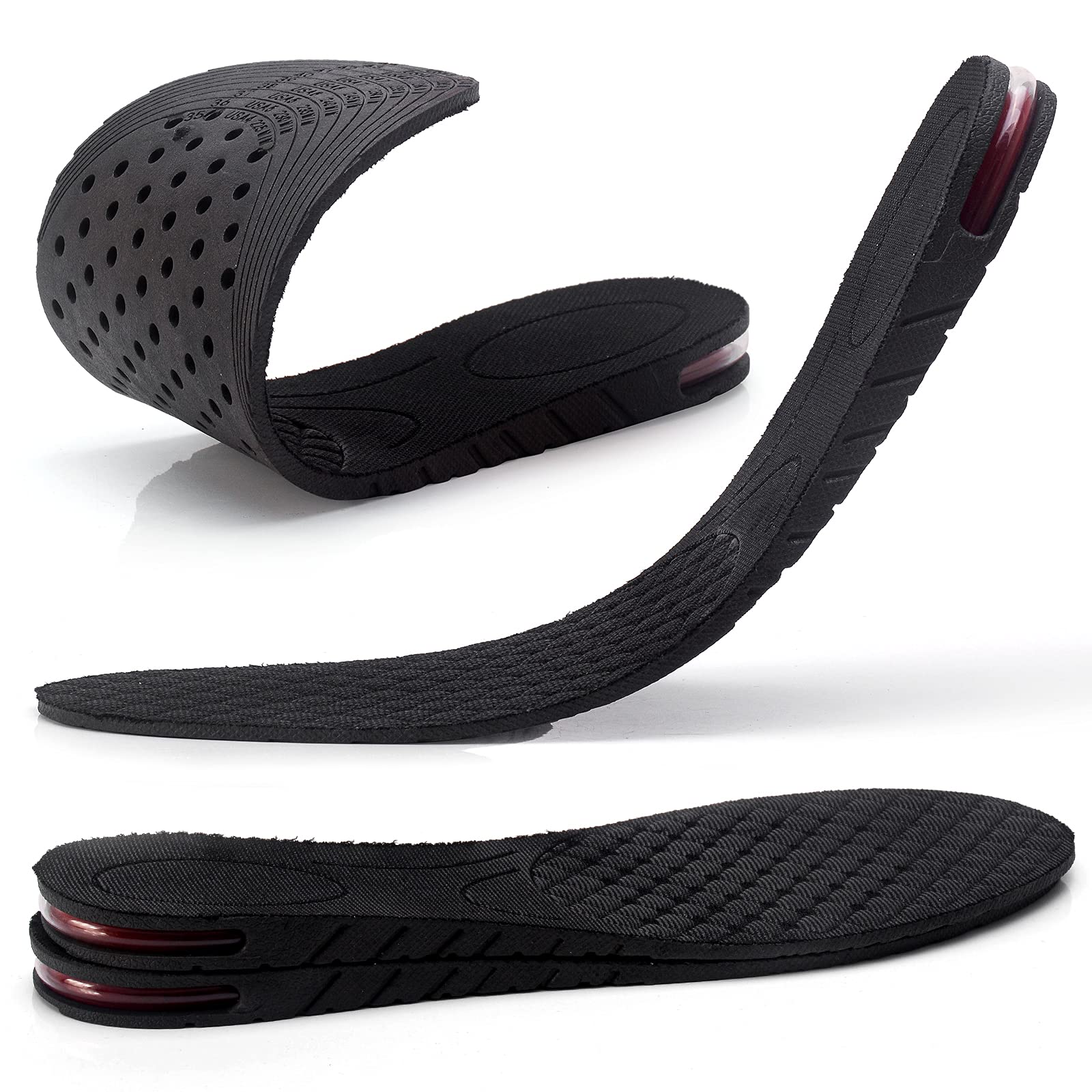 Height Increasing Insoles 2 Pairs with Air Cushion Shoe Pads Larger Heel Inserts for Men and Women Black