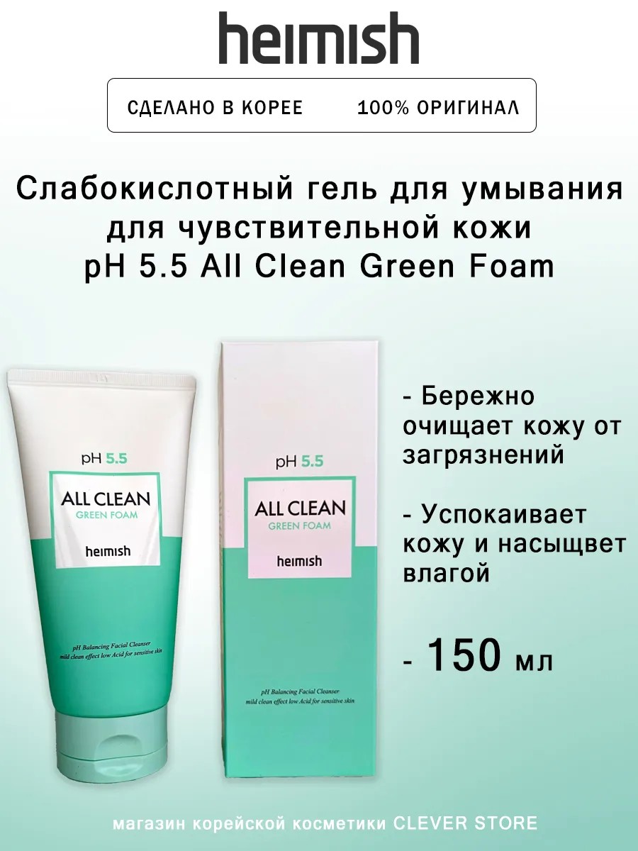 Heimish Слабокислотный гель для умывания All Clean Green Foam