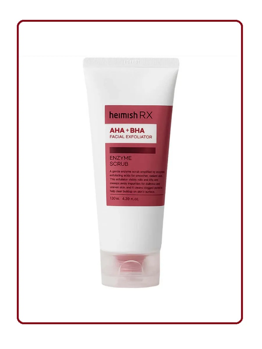 Heimish RX AHA BHA Enzyme Scrub exfoliates the stratum corneum, removes excess sebum, softens rough areas, and smoothes skin texture.